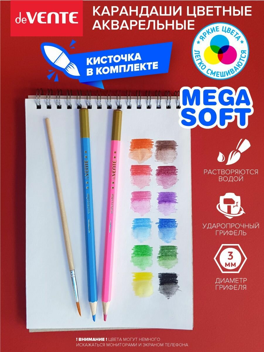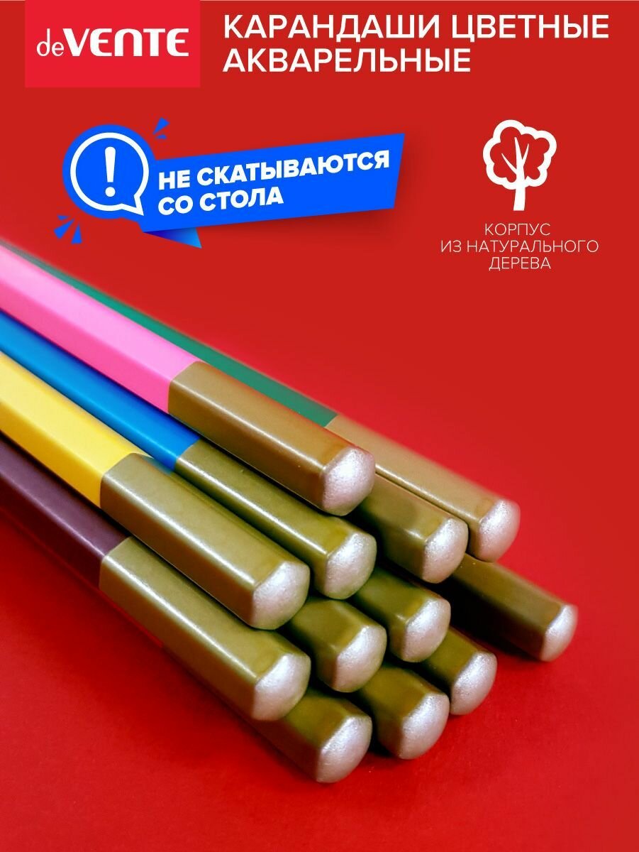 deVENTE Карандаши акварельные 12 цветов, deVENTE Trio Mega Soft, 3 мм, шестигранные, в картонной коробке
