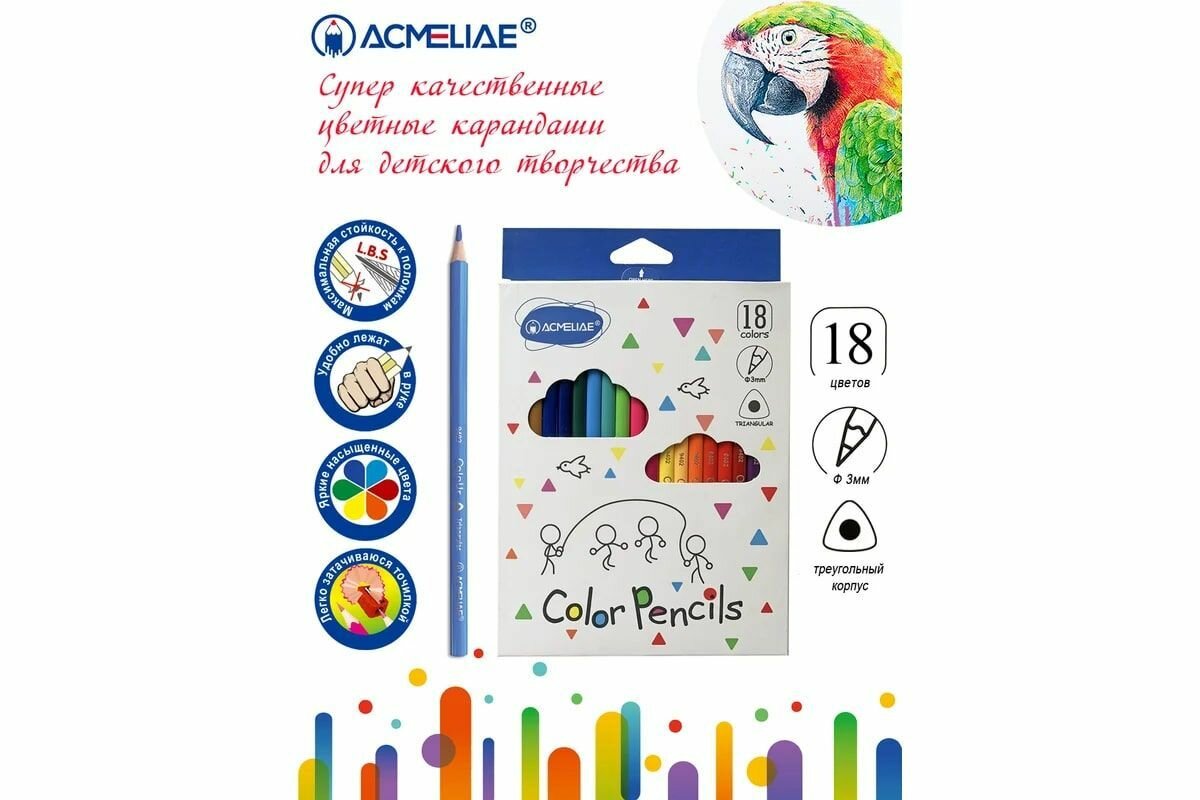 10 цен на Набор цветных трехгранных карандашей ACMELIAE 18цв. в картонном футляре
