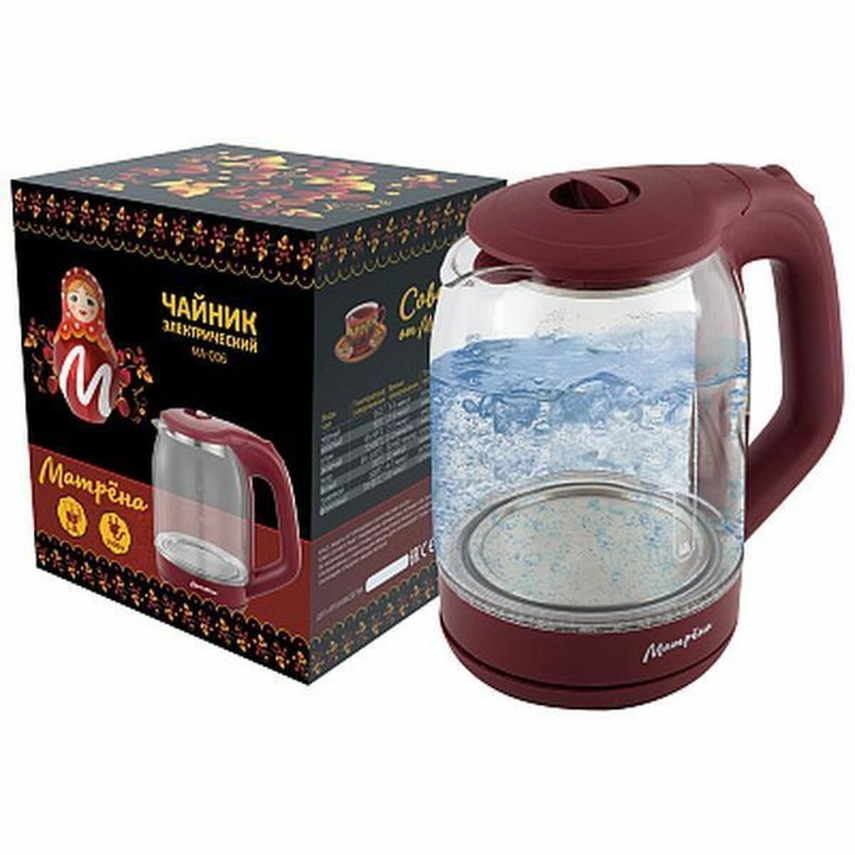 Стеклянный чайник электрический Матрена MA-006, 1,8 л, пластик вишневый 1 522 ₽