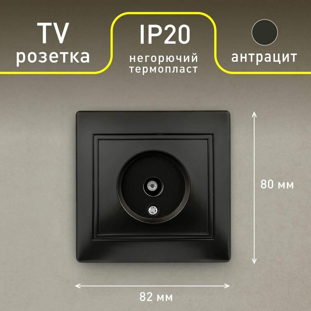 Розетка телевизионная одиночная Intro Plano 1-301-05 скрытой установки черный информация: