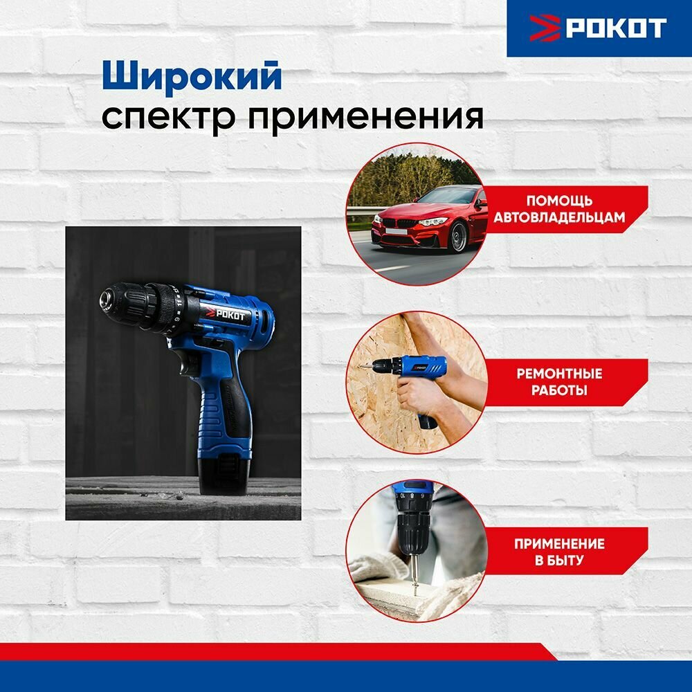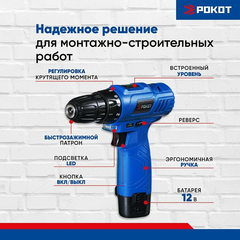 10 цен на Дрель-шуруповерт рокот аккумуляторная ДША-12В, 0-550 об/мин, 1,3 Li-on (1), 18 н*м