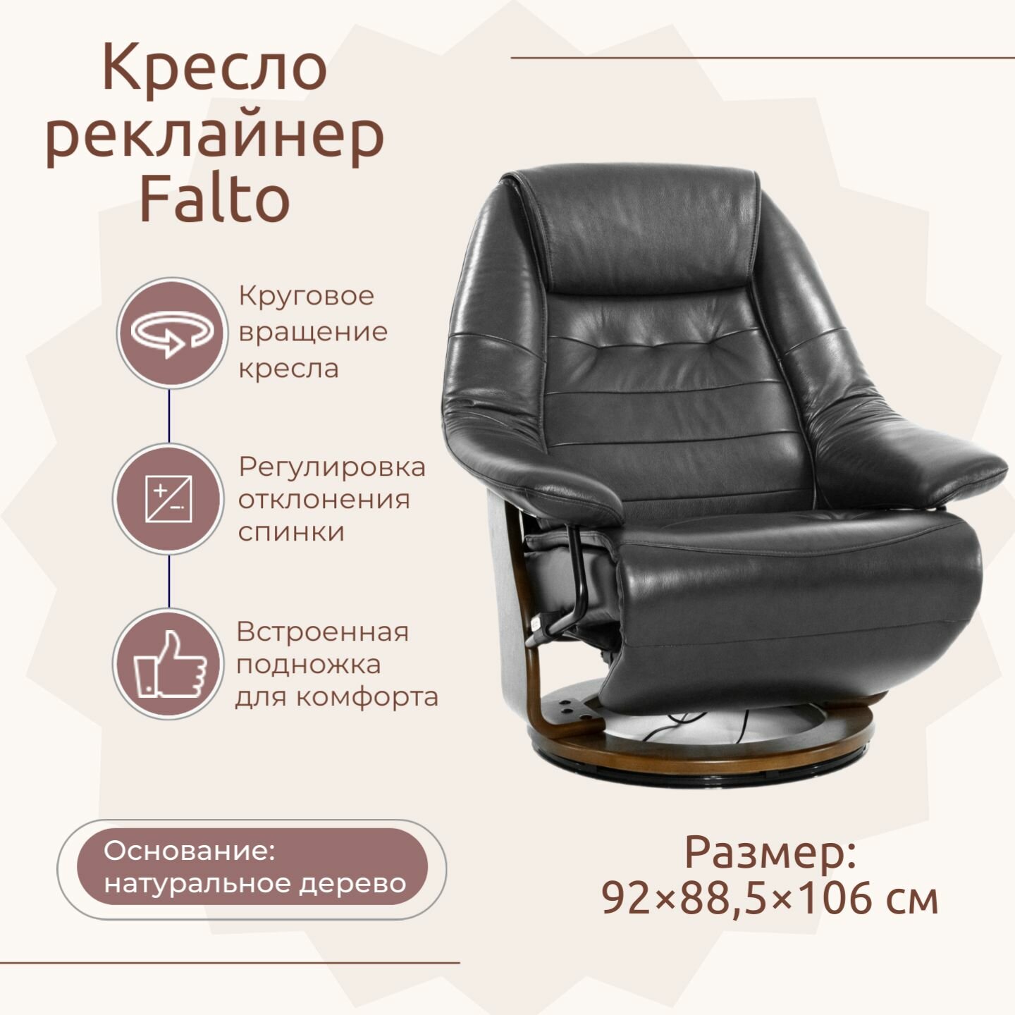 Кресло электрореклайнер Falto Relax Zero Electro ZERO-4106 - кремовое, каркас темный орех (кожа) 234 400 ₽