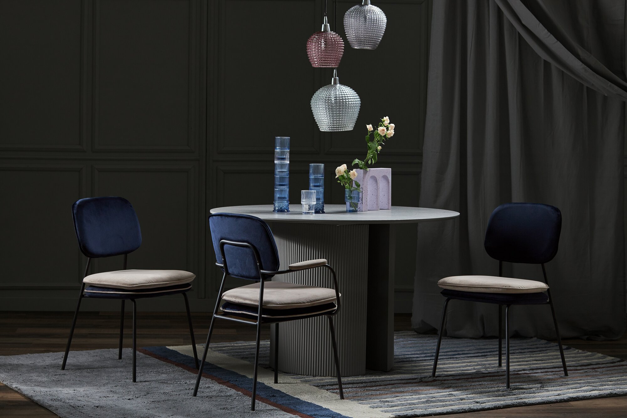 10 цен на Стул с контрастным кантом Pea велюр для дома и офиса темно-синий/бежевый Bergenson Bjorn BB0000691