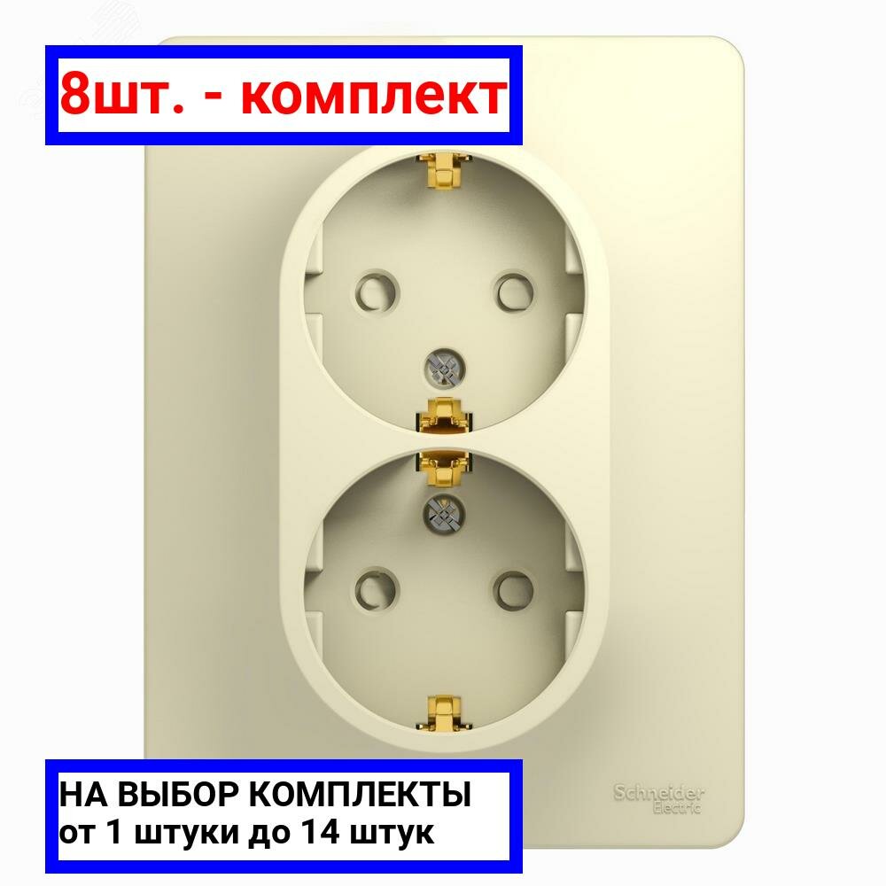 10 цен на GLOSSA Розетка двойная с заземлением со шторками в сборе бежевая | код. GSL000226 | Schneider Electric (8шт.в упак.)