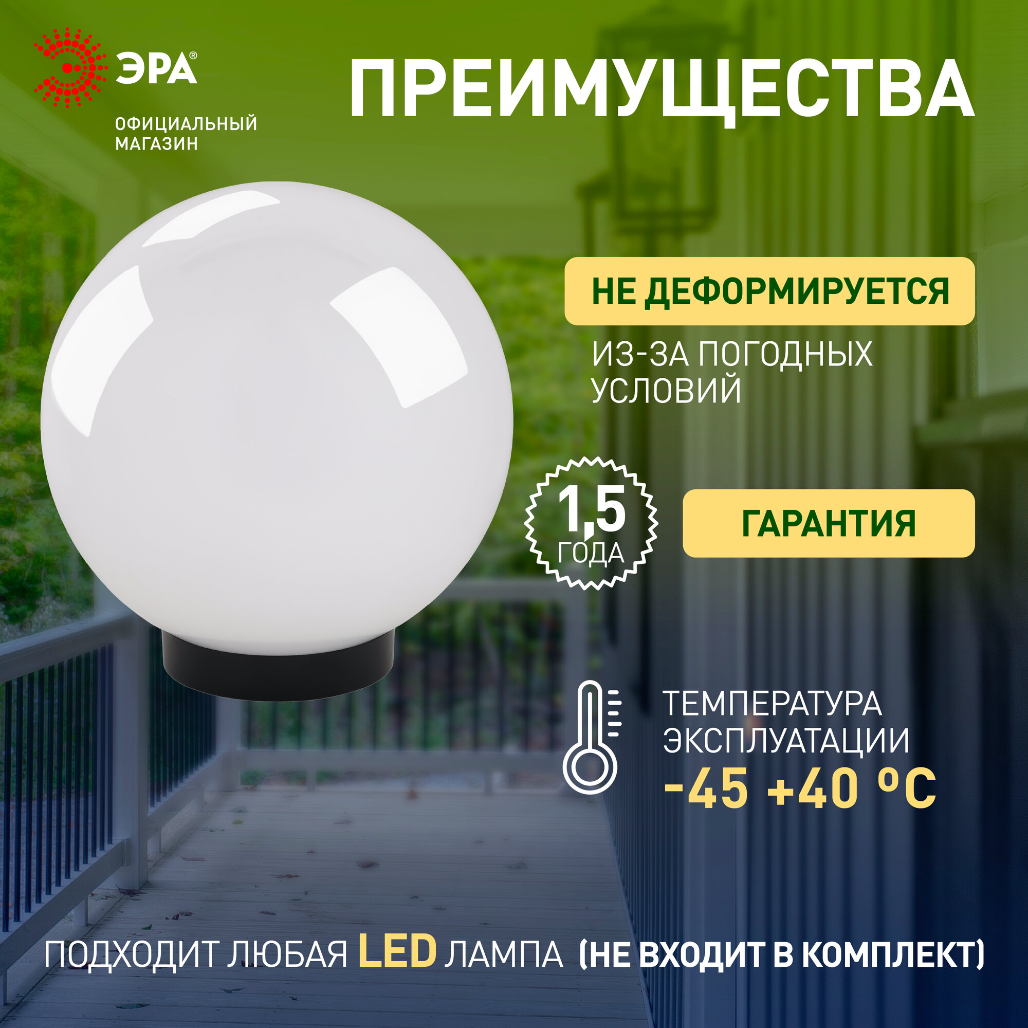 Отзывы на Светильник уличный шар на столб ЭРА НТУ 02-100-351 белый 220в, D350mm, Е27