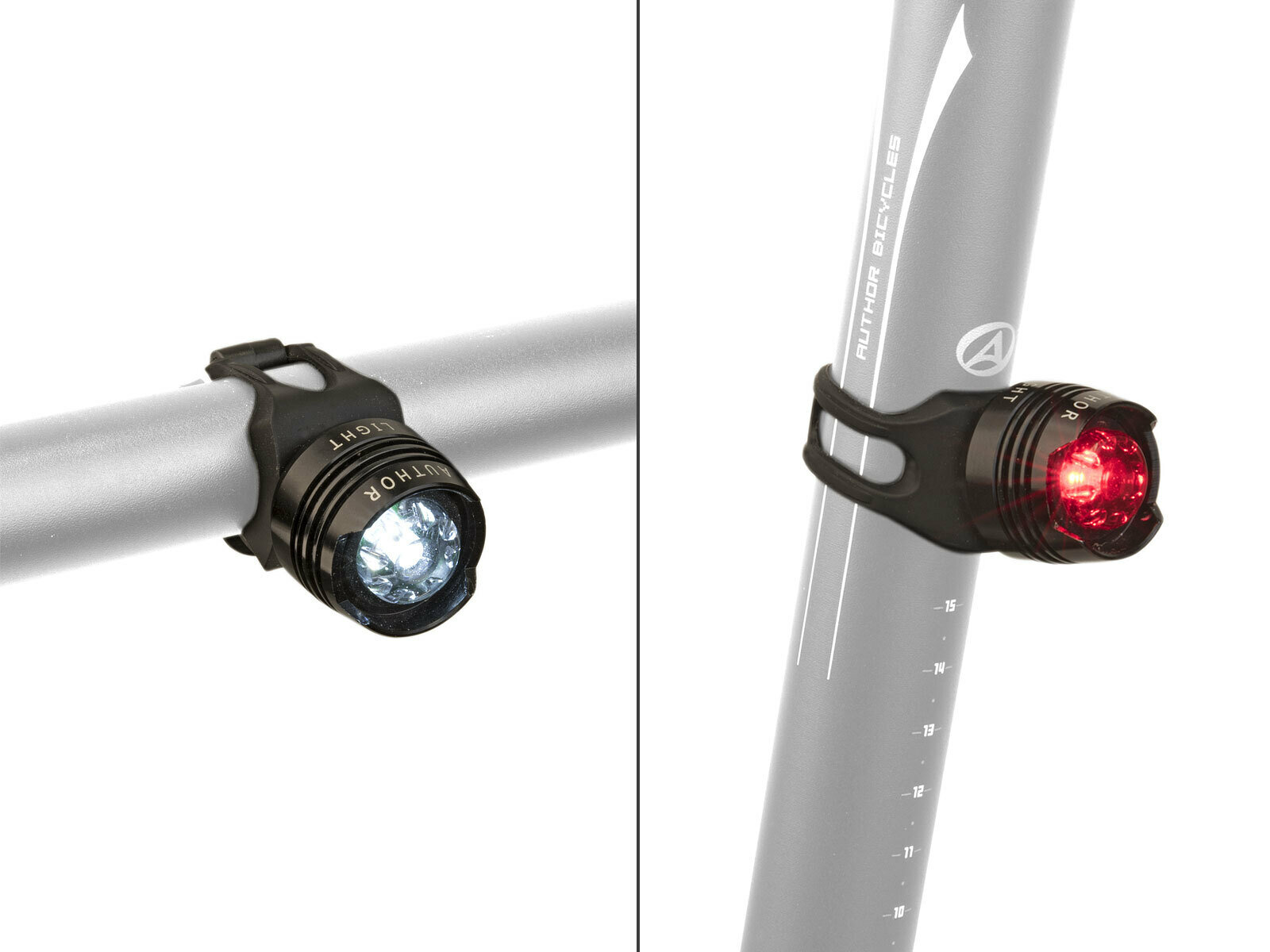 10 цен на Фонарь AUTHOR SPARK AL 5 люмен перед 1 диод/3ф задний1 диод/3ф с батарейкой алюминиевый