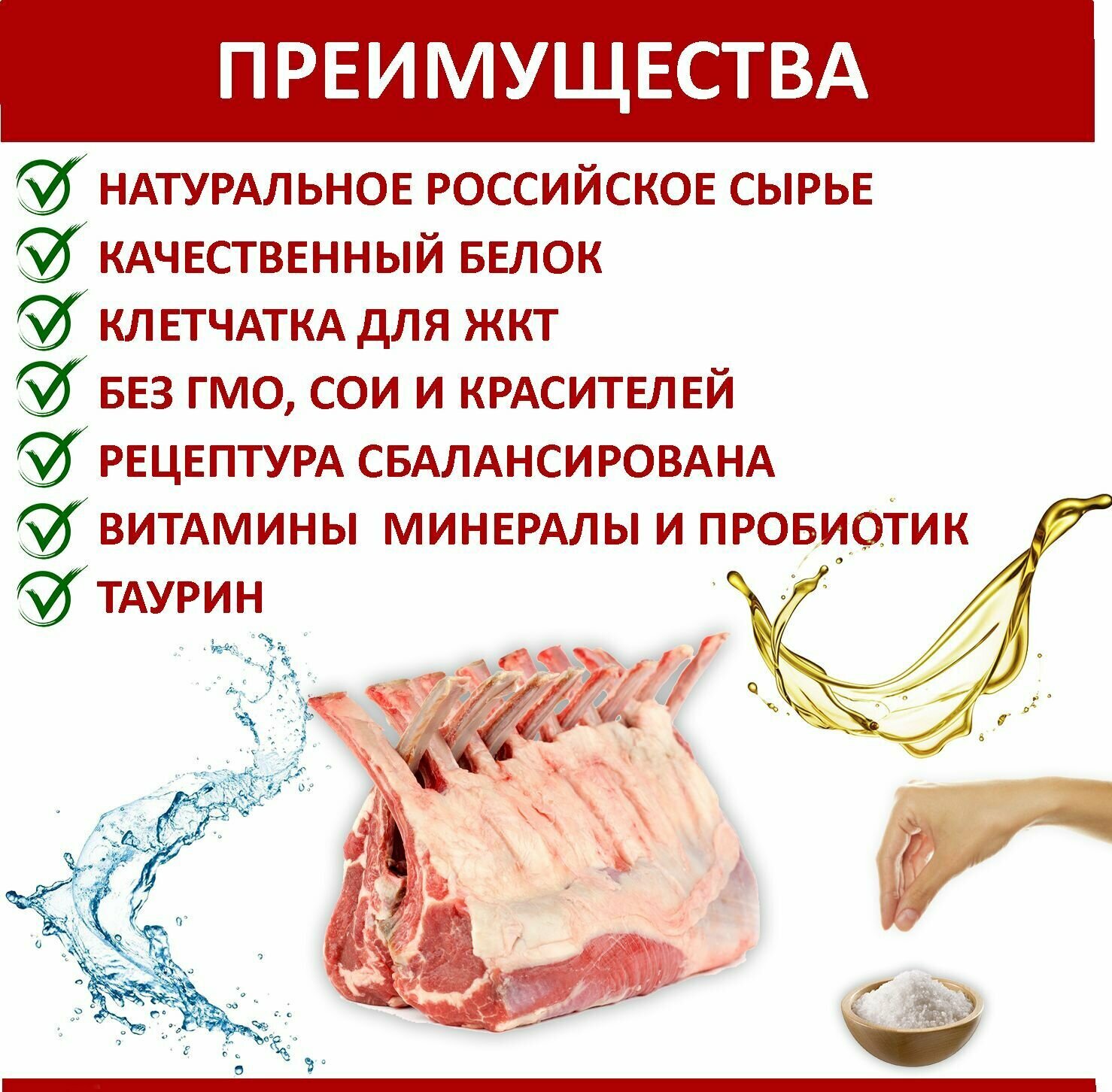 | Состав | мясо (ягнёнок не менее 4%), печень, легкое, сычуг, мясной бульон, злаки, таурин, свекольный жом, натуральный пробиотик «Биум», витамины и минеральные вещества |