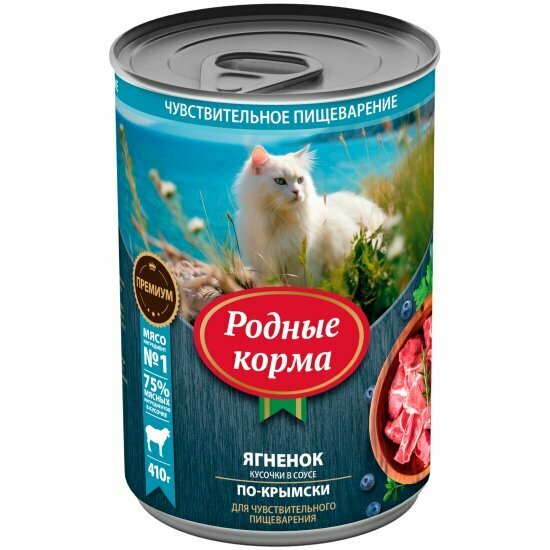 Родные корма Консервы для кошек с ягненком кусочки в соусе по-крымски, 410г 0.41 кг