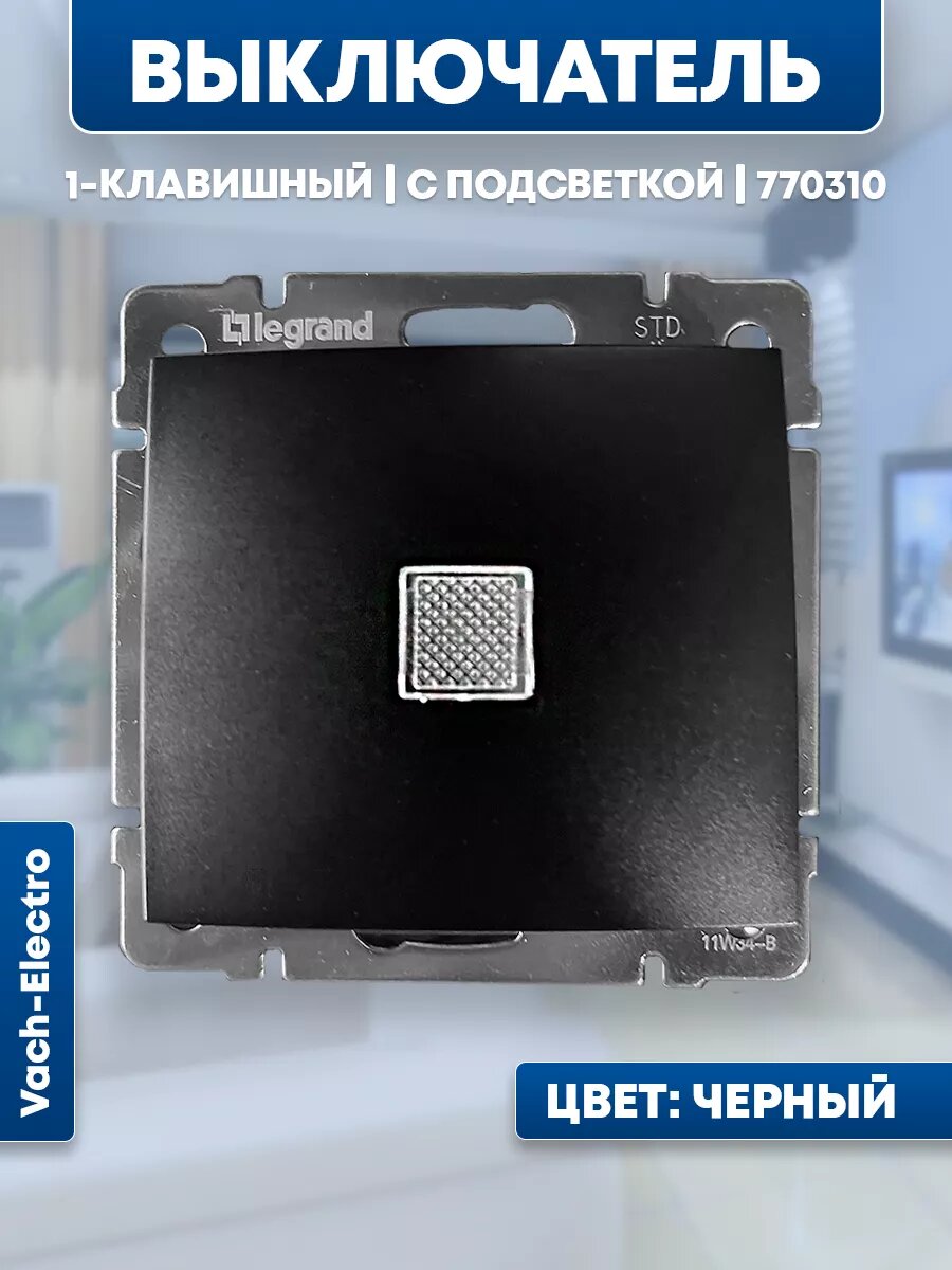 LEGRAND VALENA выключатель 1-кл с подсветкой черный 770310 1 штук информация: