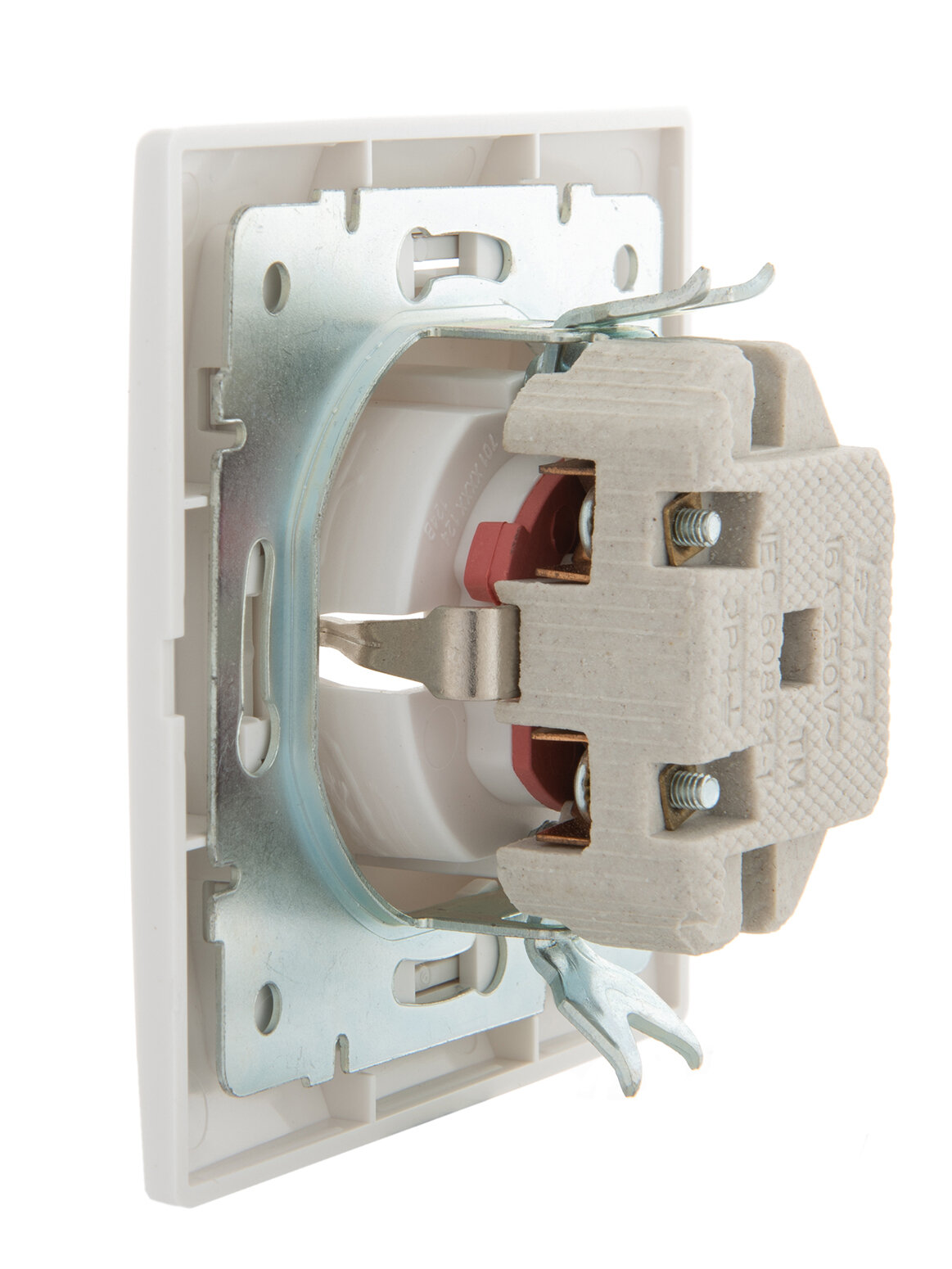 Розетка Lezard Mira, встраиваемая, в сборе, c/з, со шторками, керамика, белый