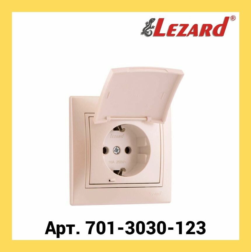 Розетка LEZARD MIRA с заземлением с крышкой керамика кремовой со вставкой 468 ₽