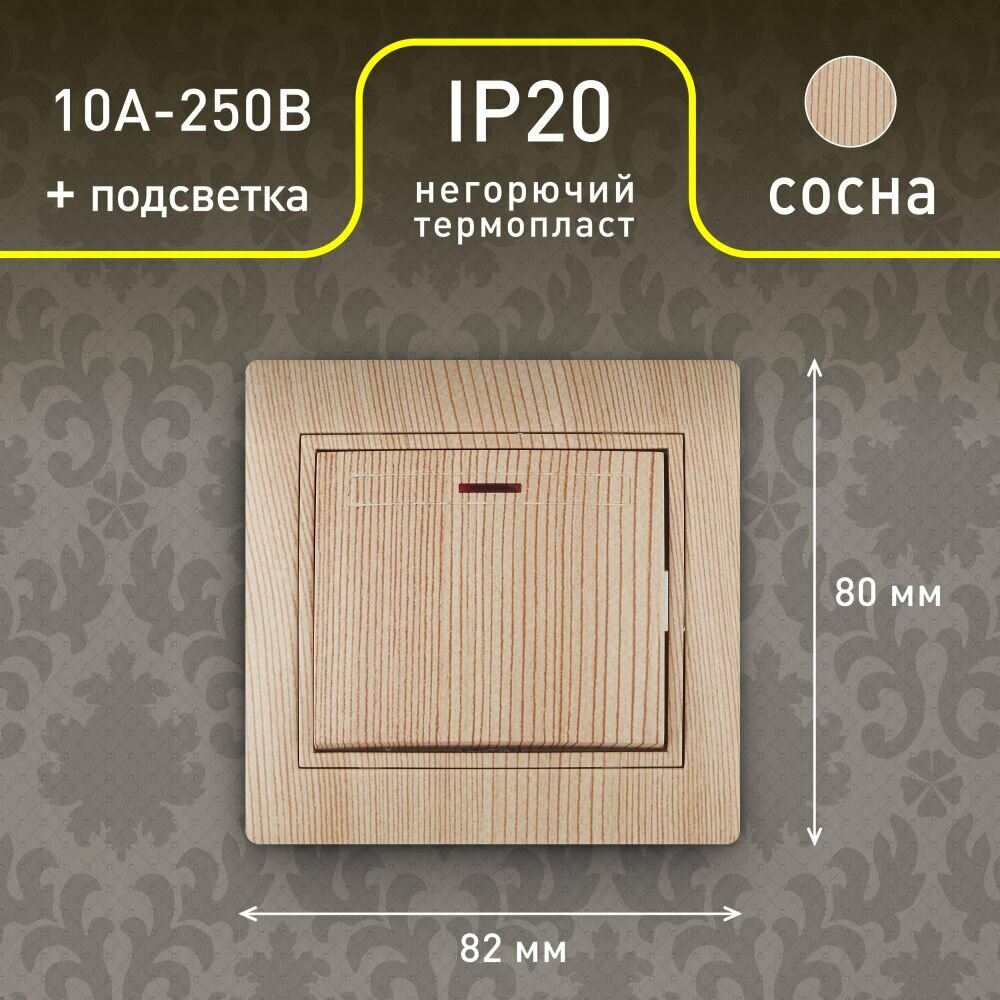 Выключатель Intro Plano 1-102-11 одноклавишный с подсветкой 10А-250В IP20 СУ сосна информация: