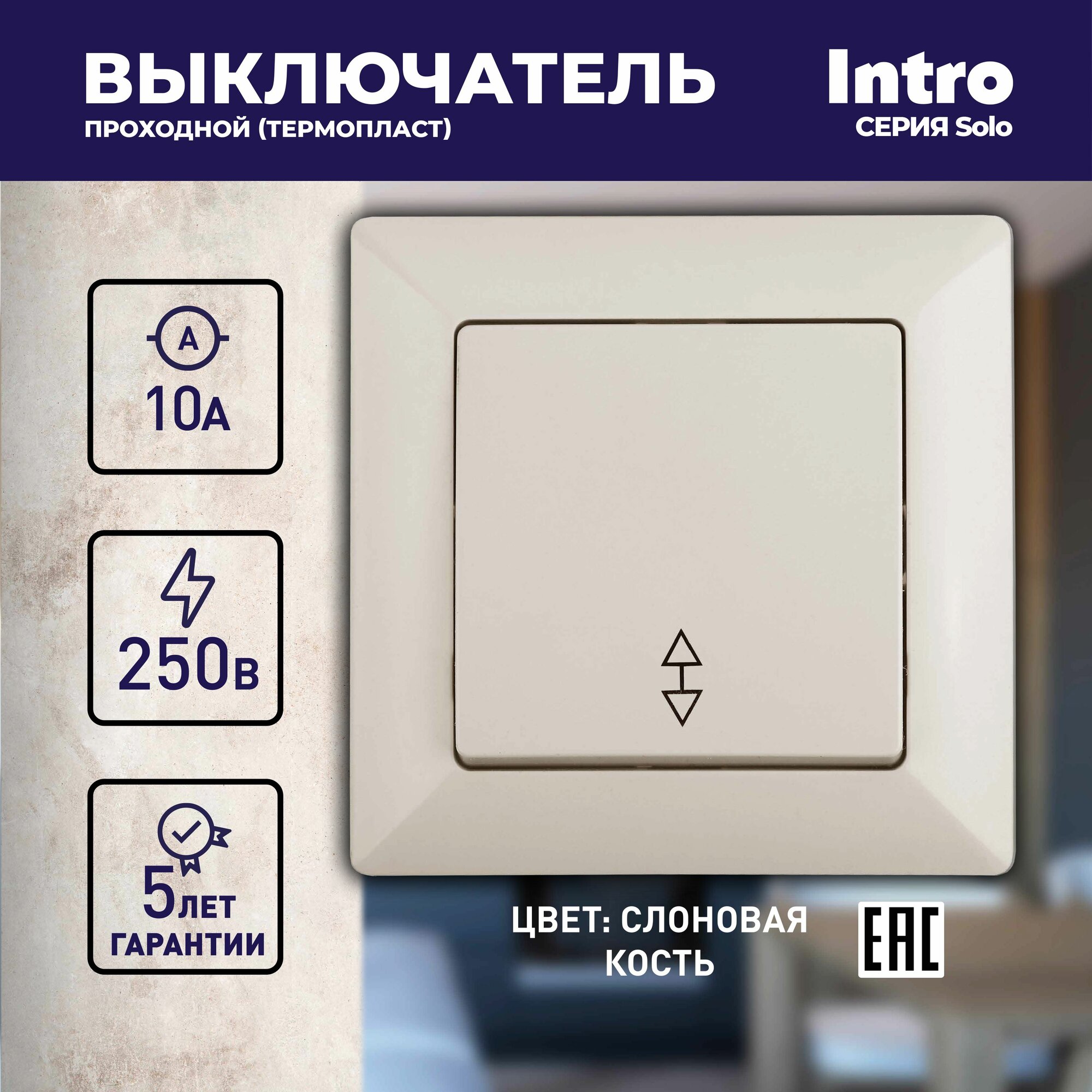 10 цен на Переключатель Intro Solo 4-103-02 одноклавишный 10А-250В IP20 СУ слоновая кость