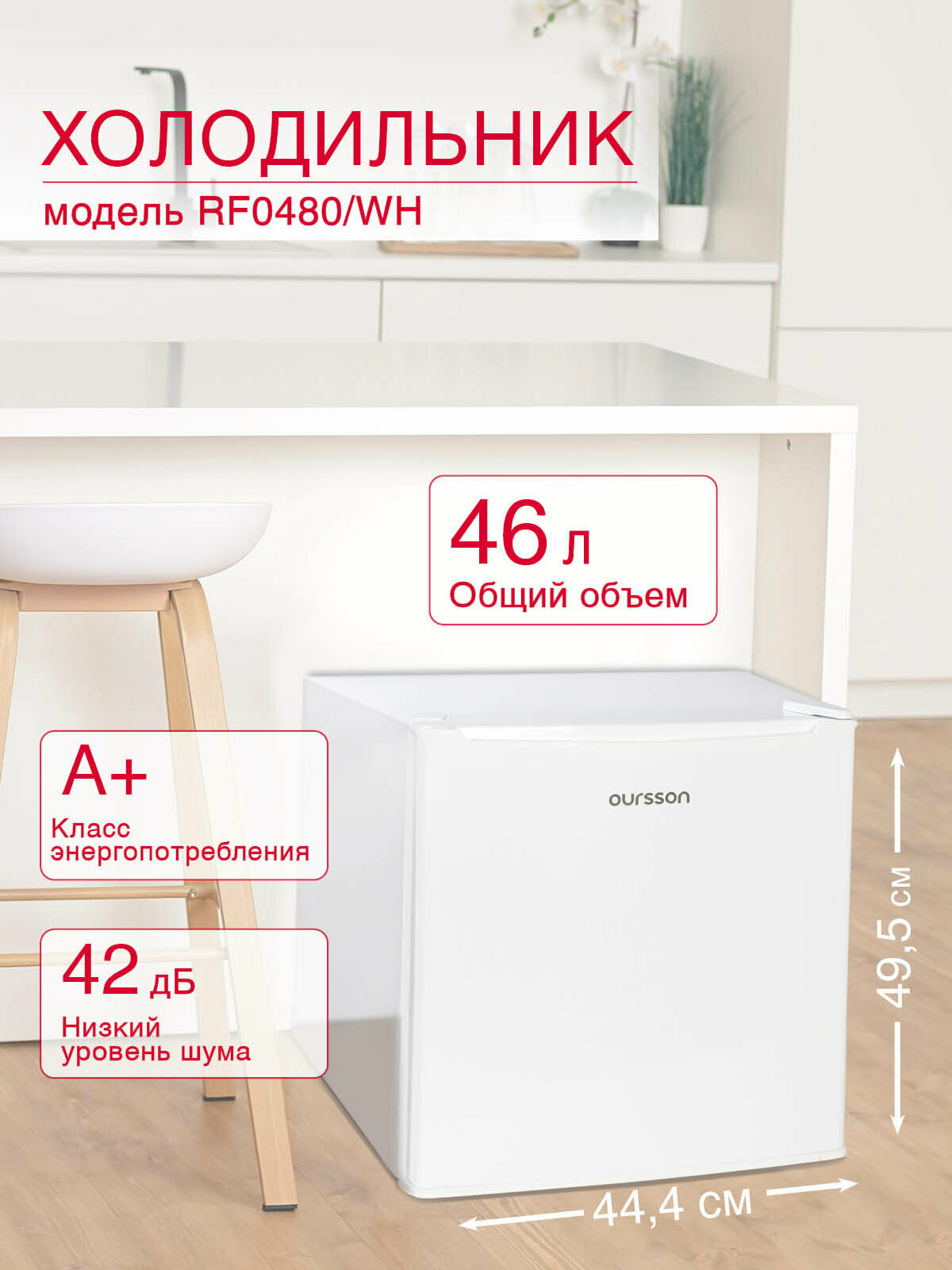Холодильник Oursson RF0480/WH, A+, перевешиваемые дверцы, зона свежести, белый информация: