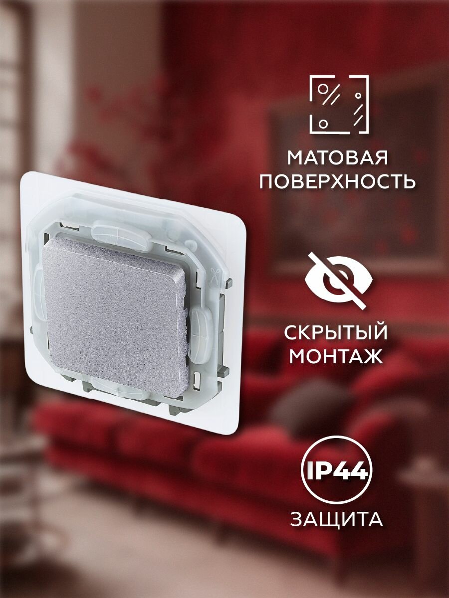 Переключатель одноклавишный INSPIRIA скрытой установки IP44 10A проходной 250В схема 6 антрацит 673673 Legrand 737 ₽