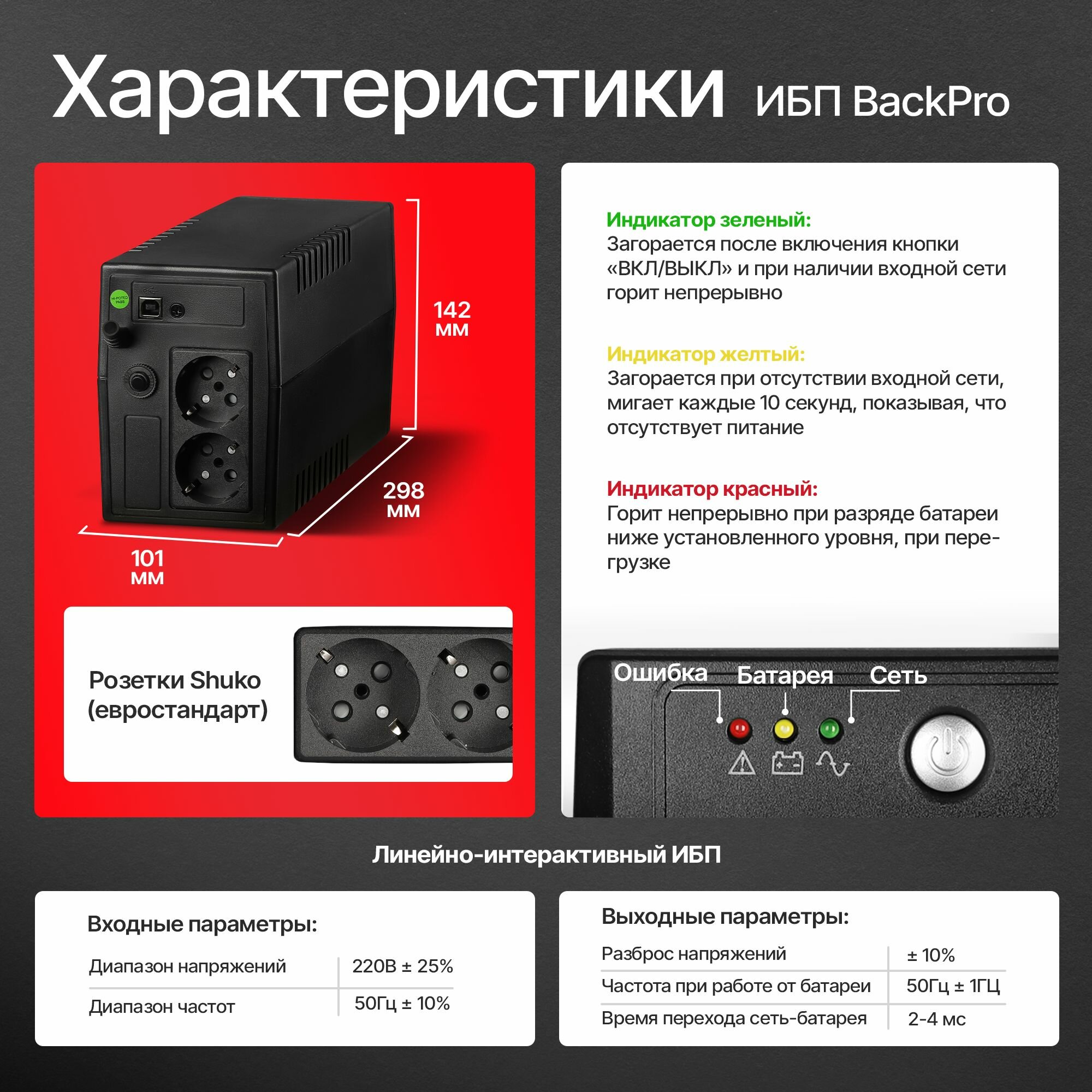 ИБП Powerman UPS BackPro 650Plus 4 (999734) 6150950 . информация: