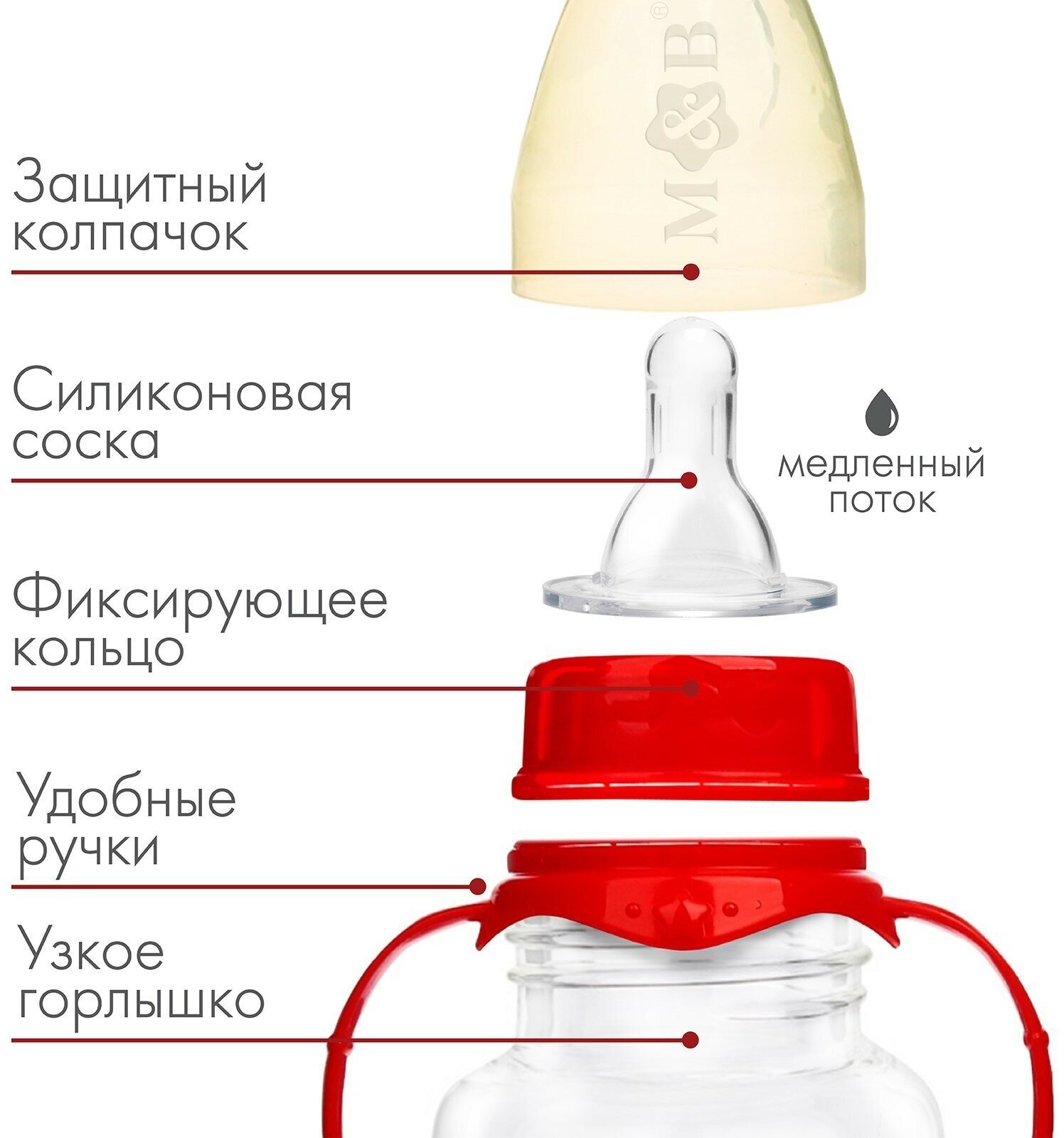 Бутылочка для кормления малыша M&B «Жирафик Лило», классическое горло, с ручками, от 0 мес., 250 мл., цвет оранжевый 503 ₽