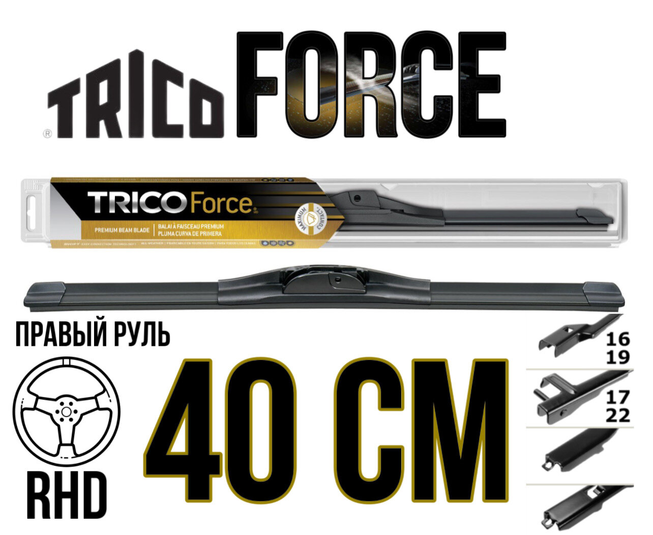 Щетка TRICO 400 мм/1шт Беcкаркасная (RHD) FORCE информация: