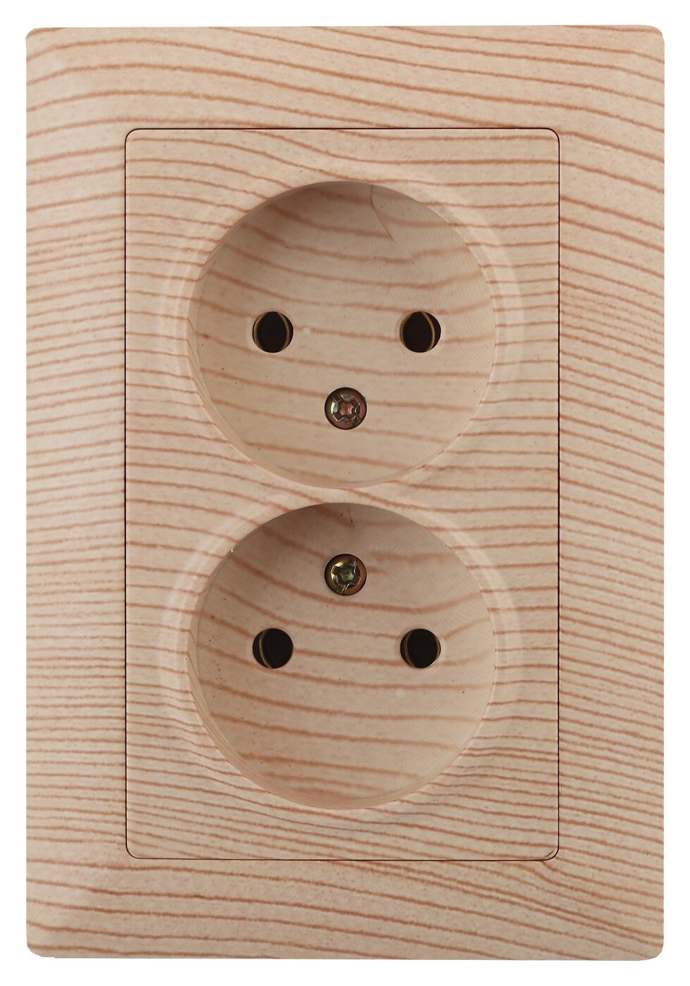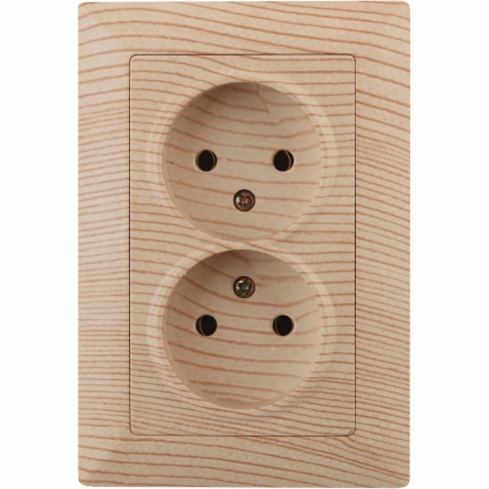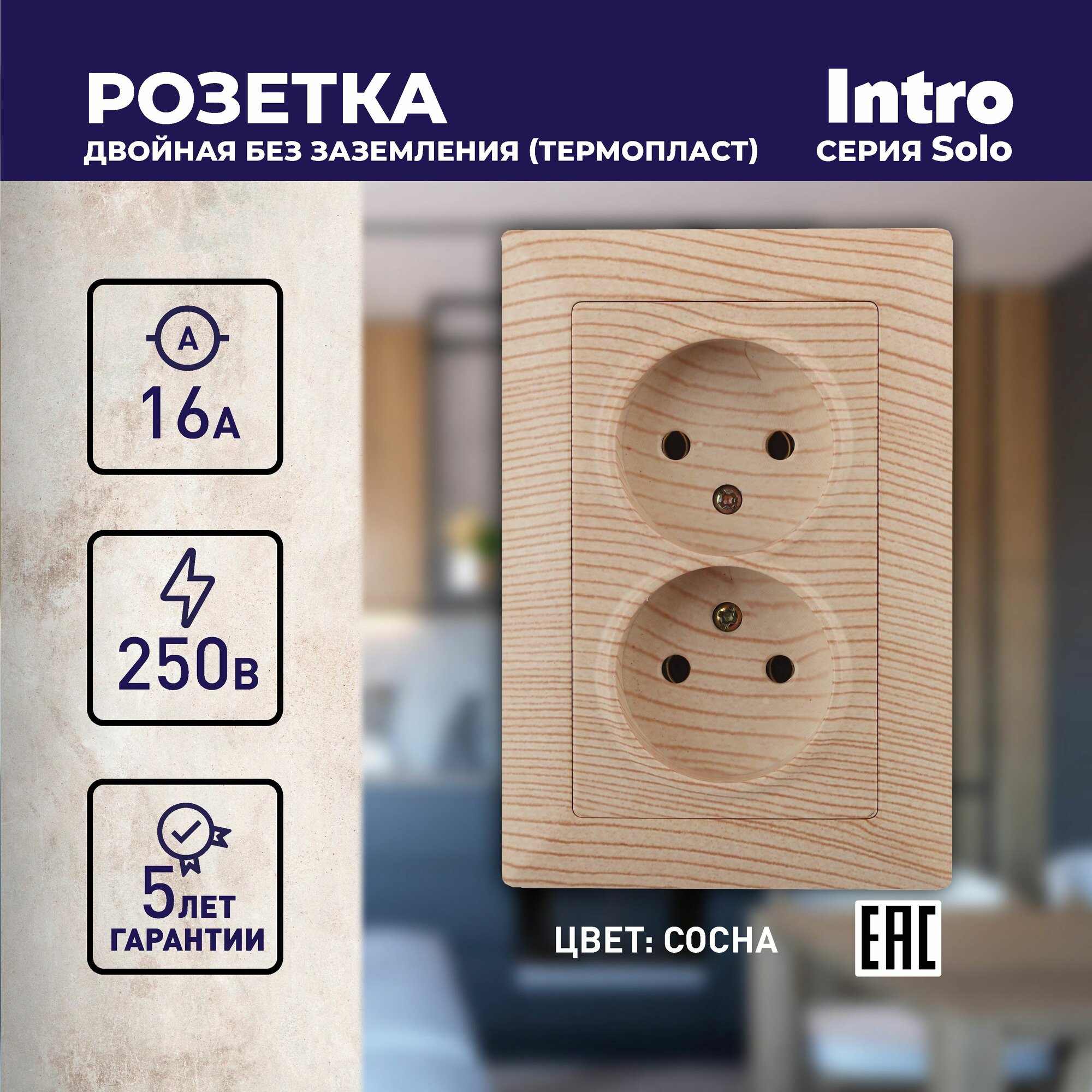 Отзывы на Розетка Intro Solo 4-204-11 без заземления двойная 2х2P 16А-250В IP20 скрытой установки сосна