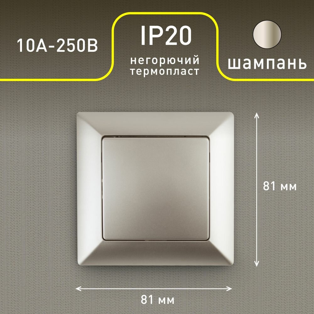 Выключатель Intro Solo 4-101-04 одноклавишный 10А-250В IP20 СУ шампань информация: