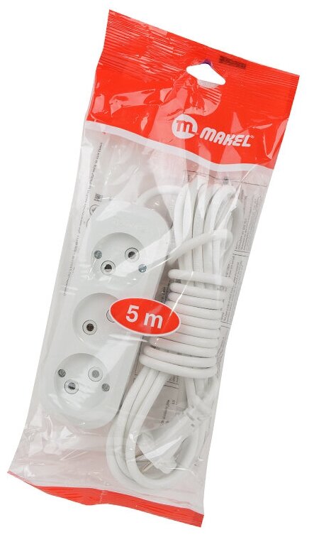Сетевой удлинитель Makel ПВС 2х0.75 3 роз. 5 м 10А MGP124