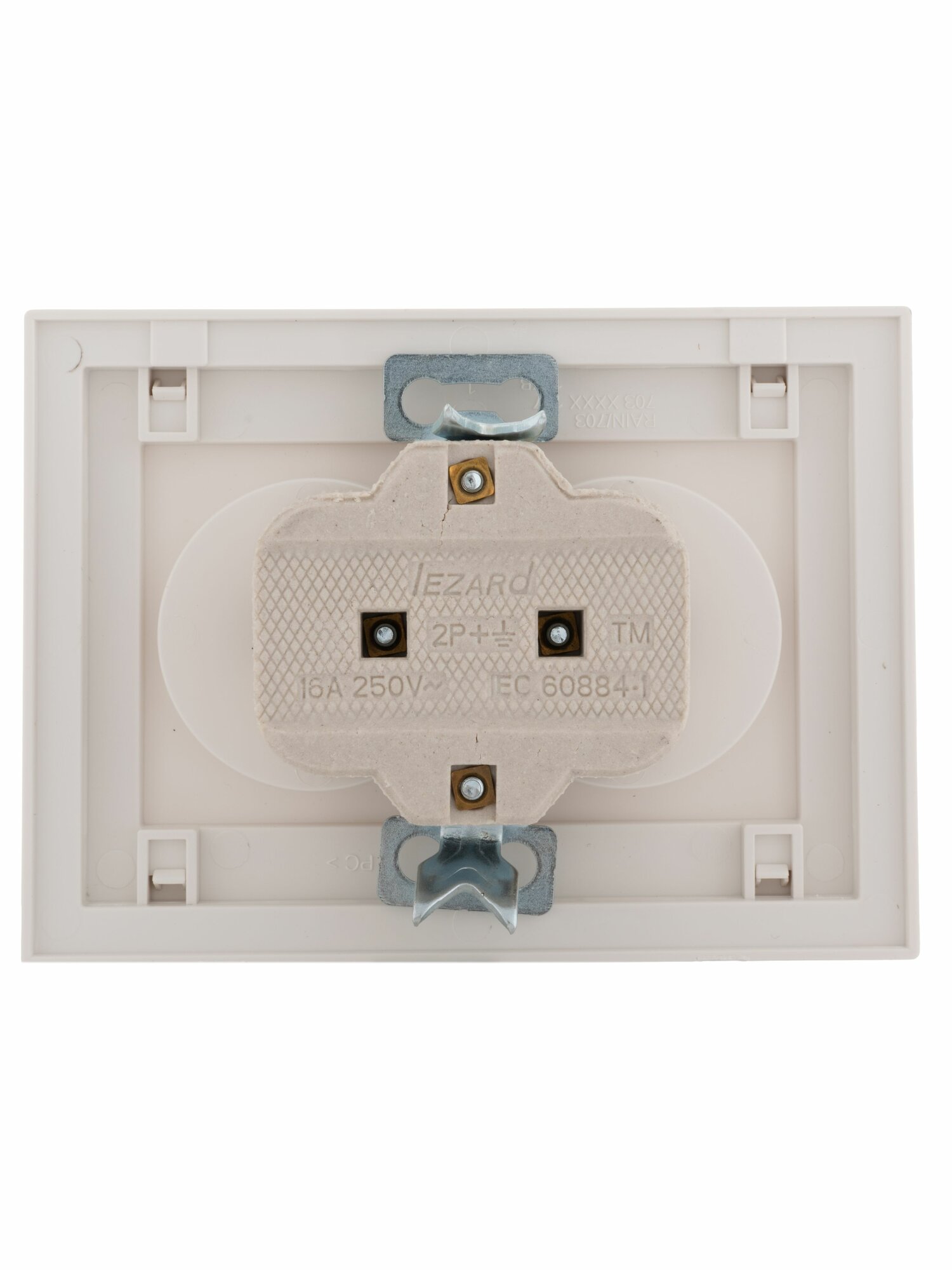 Розетка 2-м СП Рэйн 16А IP20 без заземл. с зол. боковой вставкой керамика бел. 703-0225-128, LEZARD 7030225128 (1 шт.)