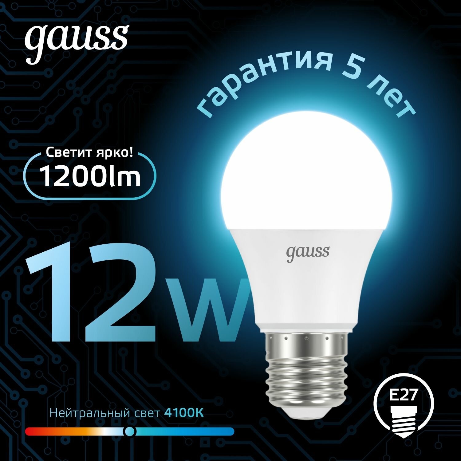 Набор из 10 штук Лампа Gauss A60 12W 1200lm 4100K E27 LED 1/10/50 информация: