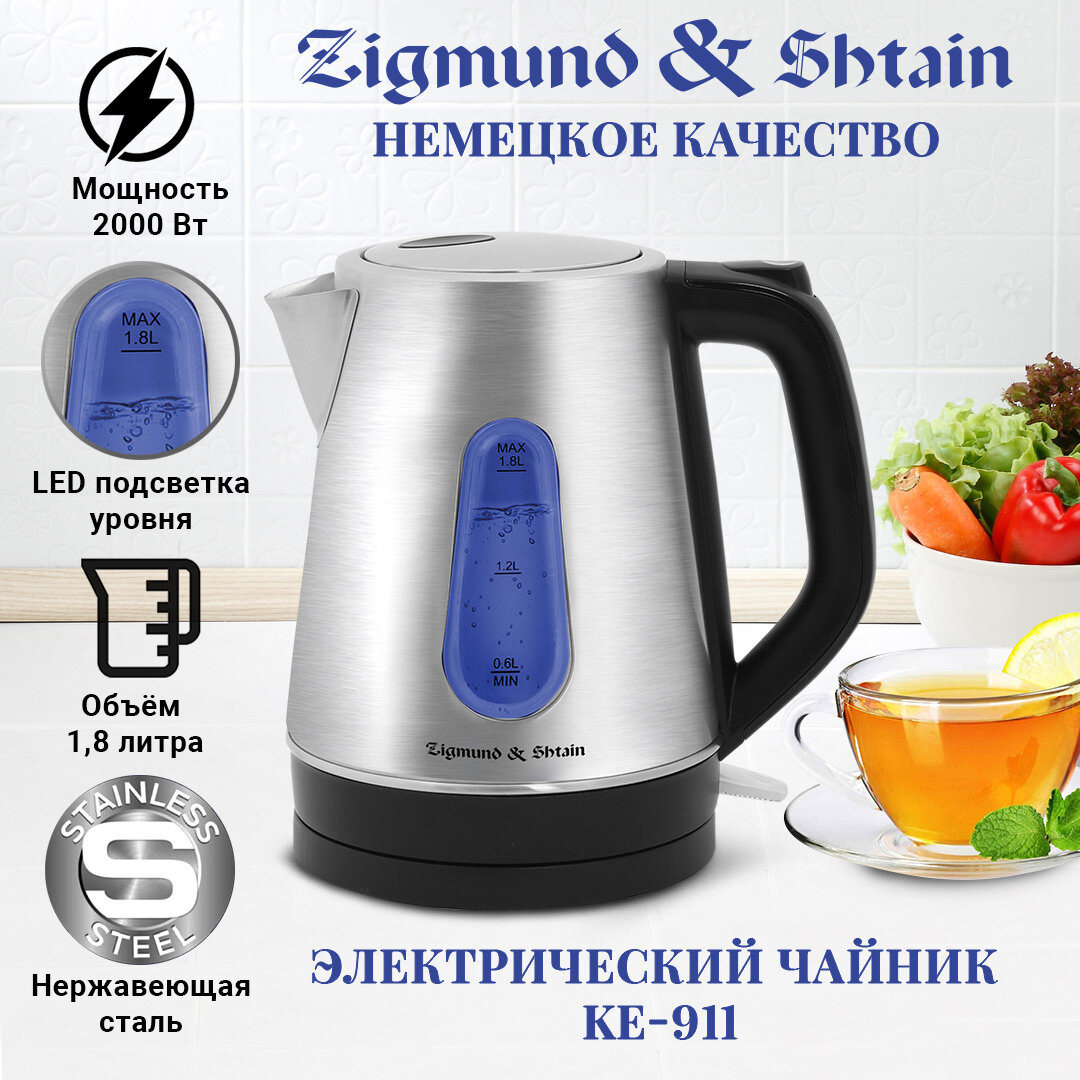 Чайник Zigmund&Shtain KE-911 /нерж, 2000Вт 1,8л/