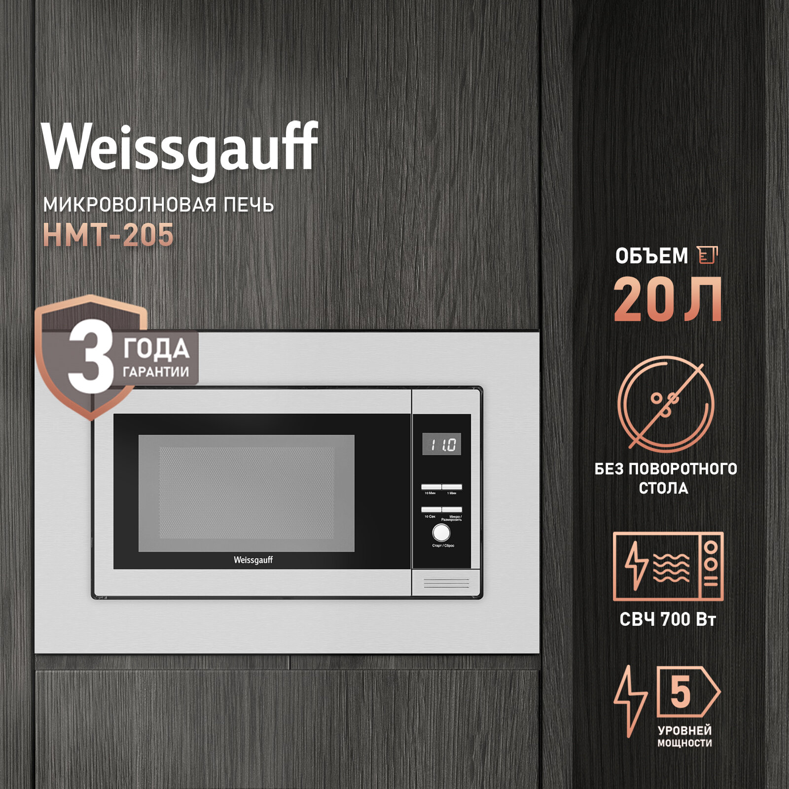 Микроволновая печь WEISSGAUFF HMT-205, встраиваемая, 20л, 700Вт, нержавеющая сталь [404294]
