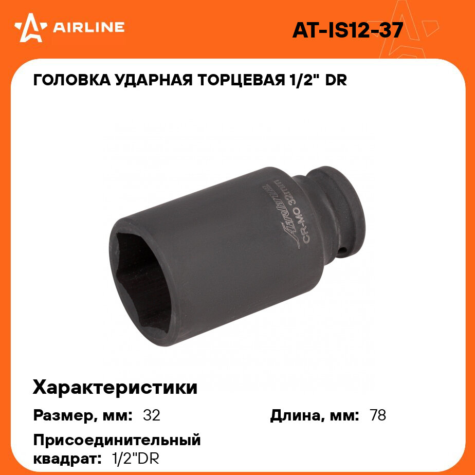 10 цен на Головка ударная торцевая 1/2" DR шестигранная 32мм L=78 мм AT-IS12-37 AIRLINE