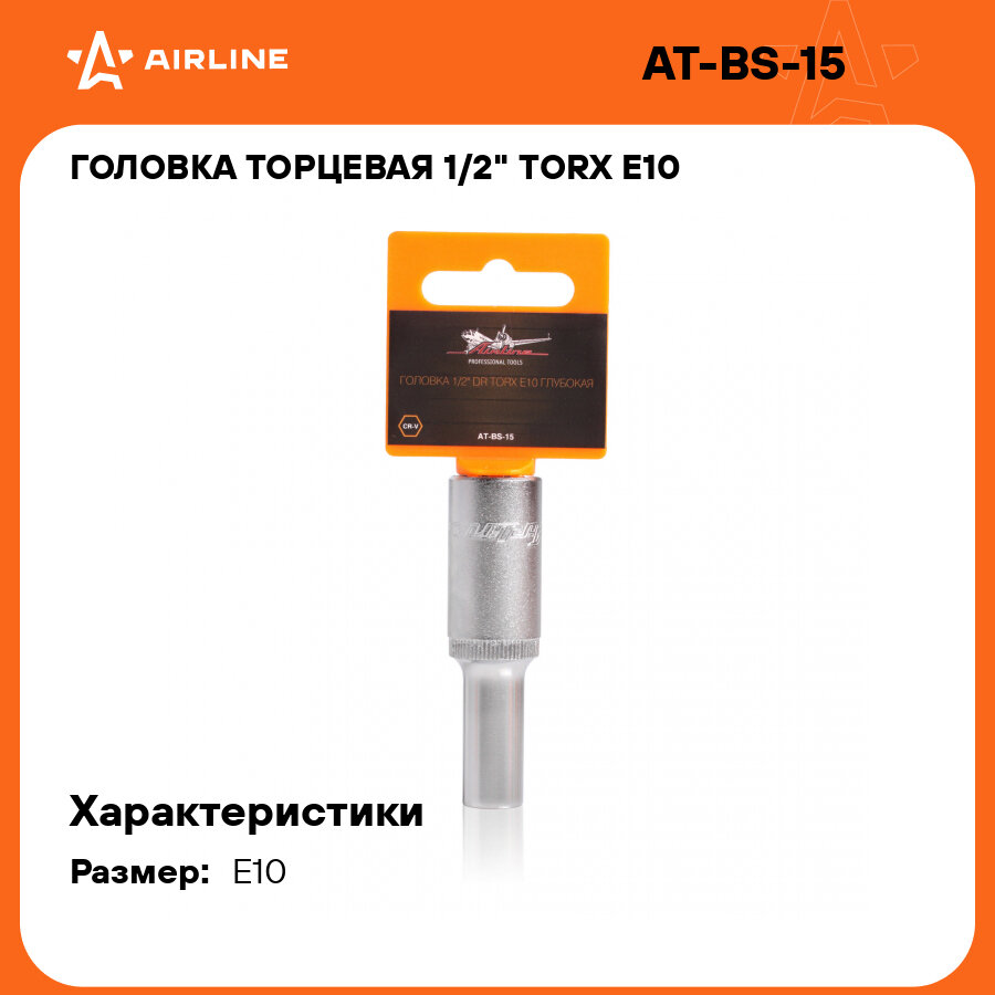Головка 1/2 DR TORX E10 глубокая (AT-BS-15) AIRLINE ATBS15 | цена за 1 шт
