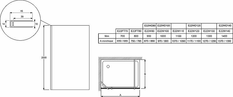 Душевая стенка Jacob Delafon E22FT70-GA Contra Боковая стенка, профиль хром