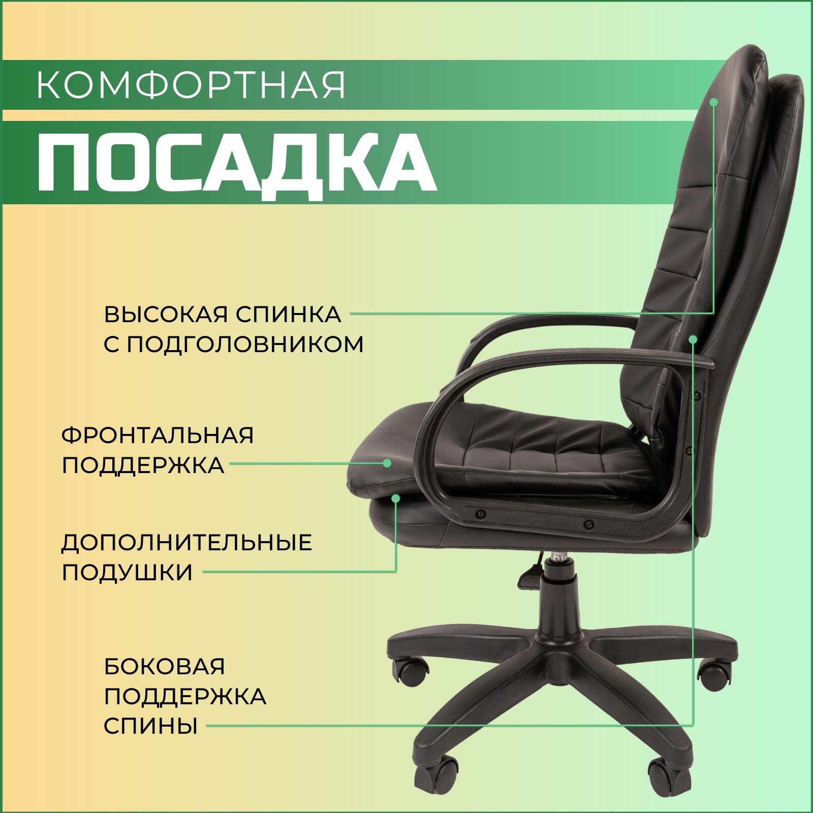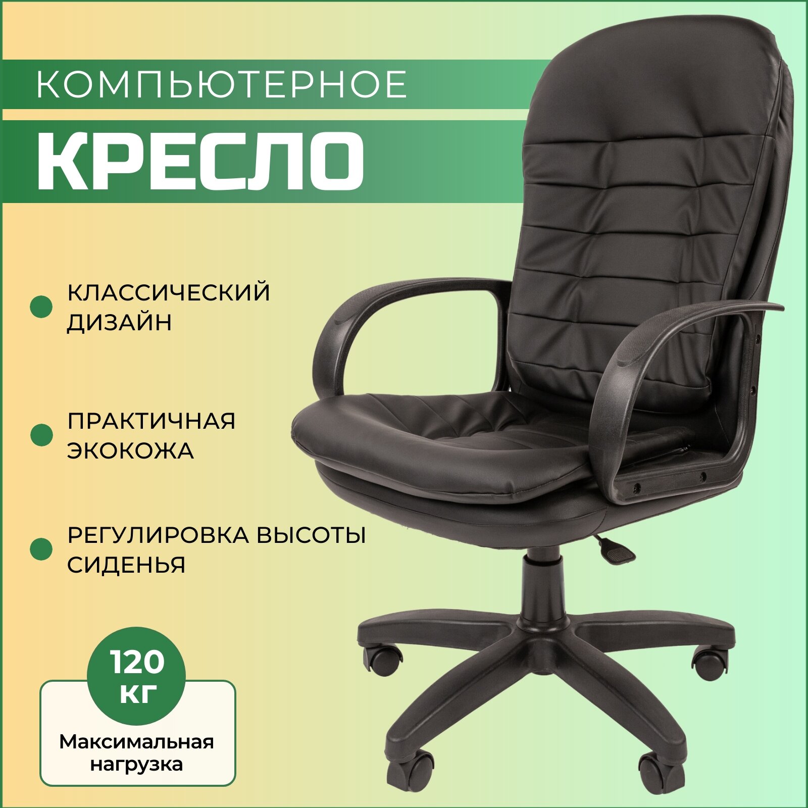 Офисное кресло руководителя стандарт СТ-95, компьютерное кресло, экокожа, черный 10 900 ₽