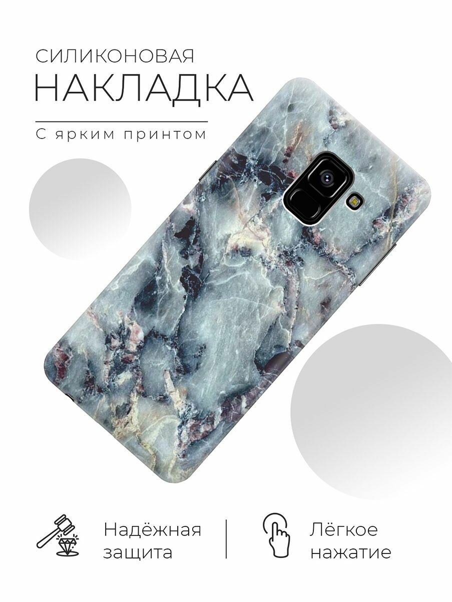Накладка Transparent для Samsung Galaxy A8 (2018) с принтом "Бледно-синий мрамор" информация: