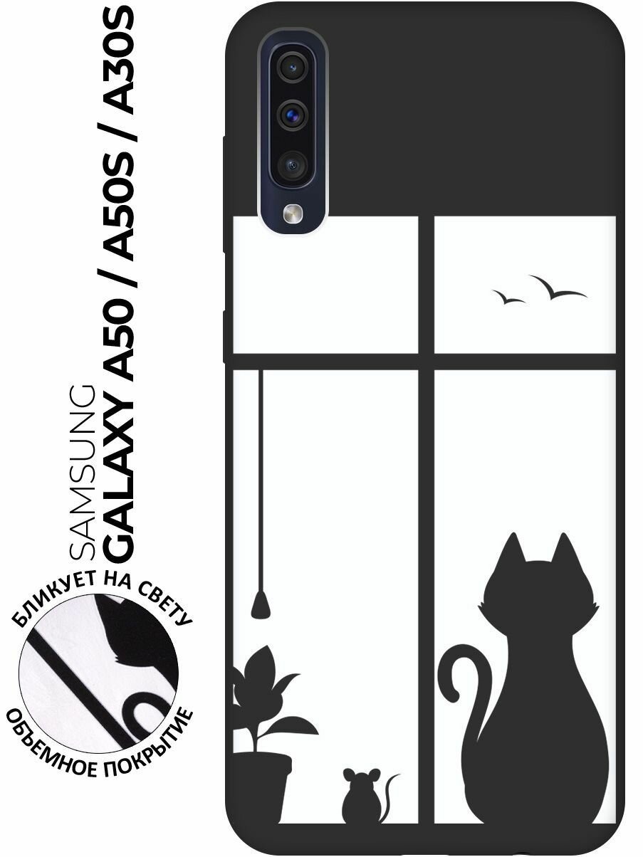 Чехол - накладка Soft Sense для Samsung Galaxy A50 / A50s / A30s с 3D принтом "Cat and Mouse" черный информация:
