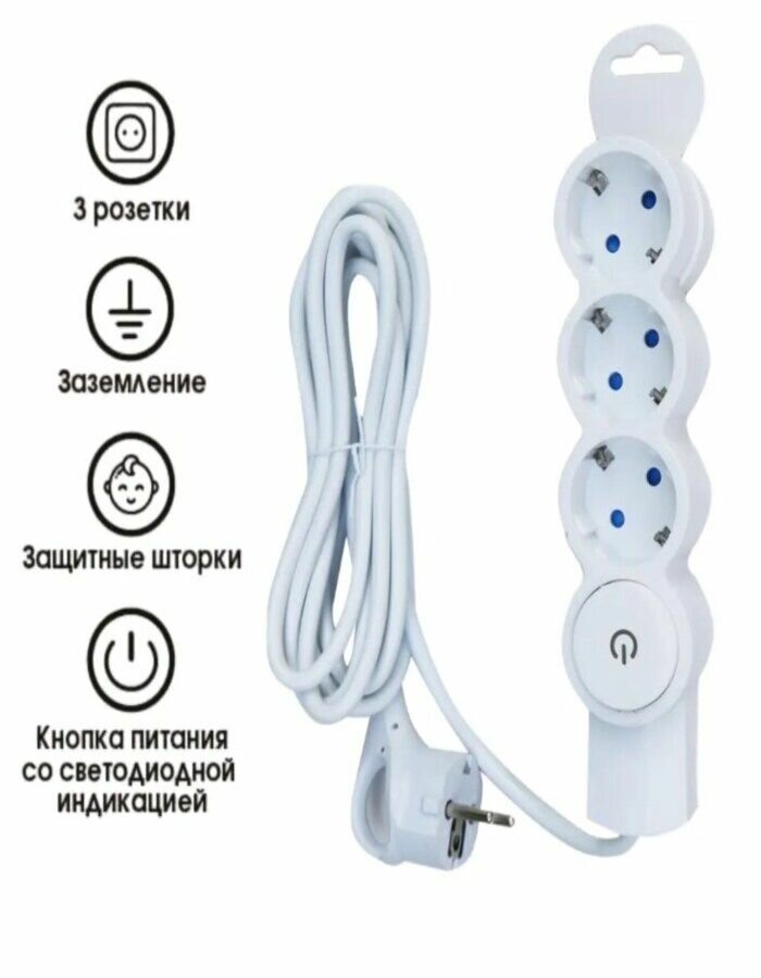 Сетевой удлинитель Спутник ВК-303, 3 розетки, 3 м, белый 880 ₽