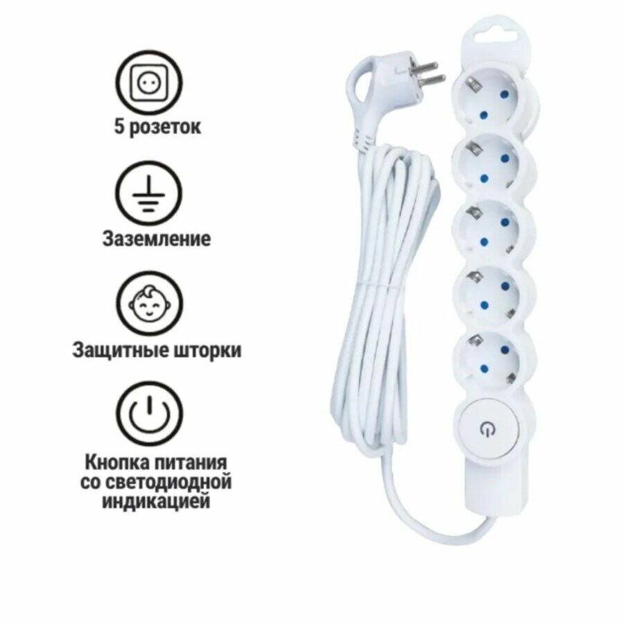 Сетевой удлинитель с заземлением Спутник ВК-303 5м 780 ₽