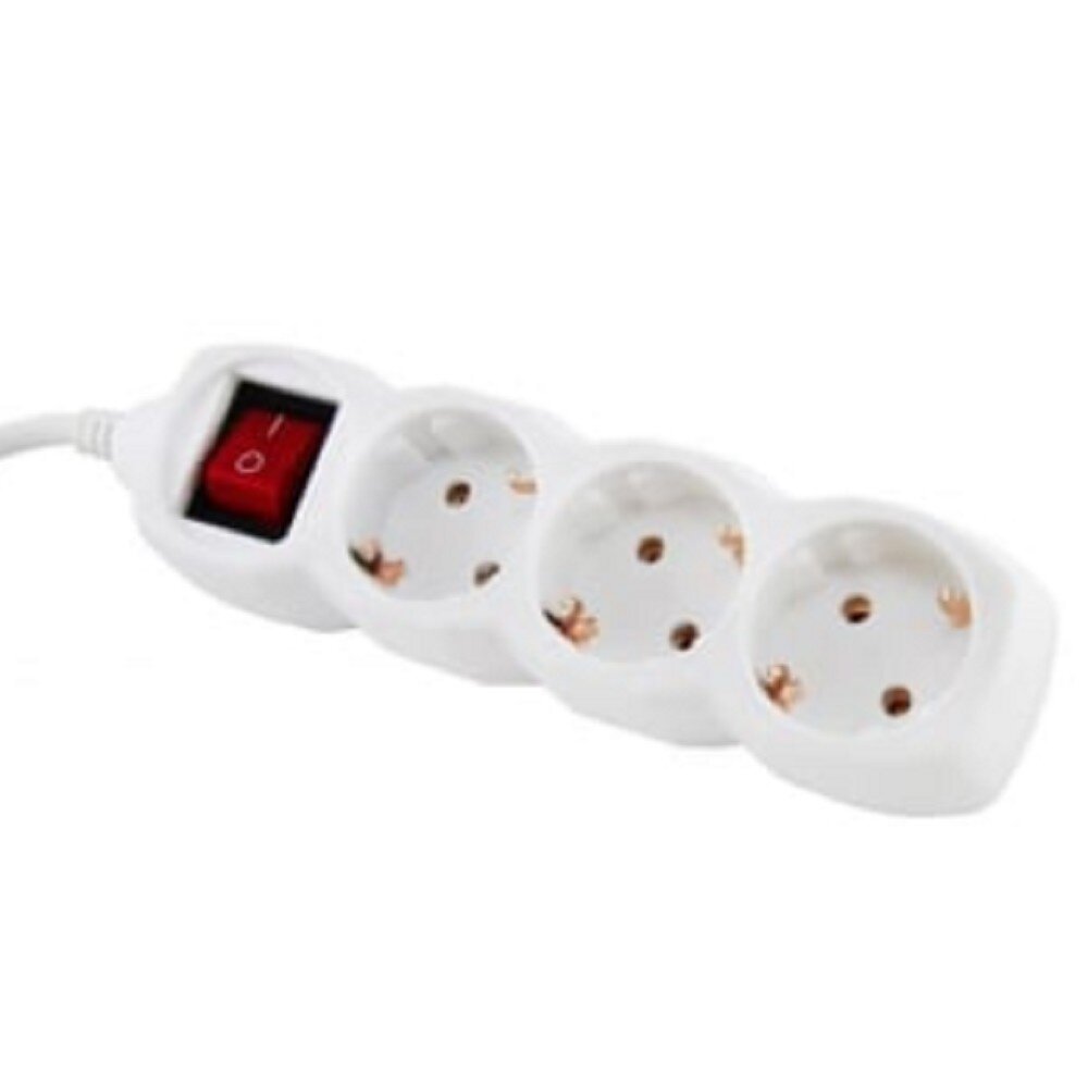 Удлинитель электрический с плоской потайной вилкой (за шкаф) 3 розетки 3 Метра 3500 Ватт с заземлением