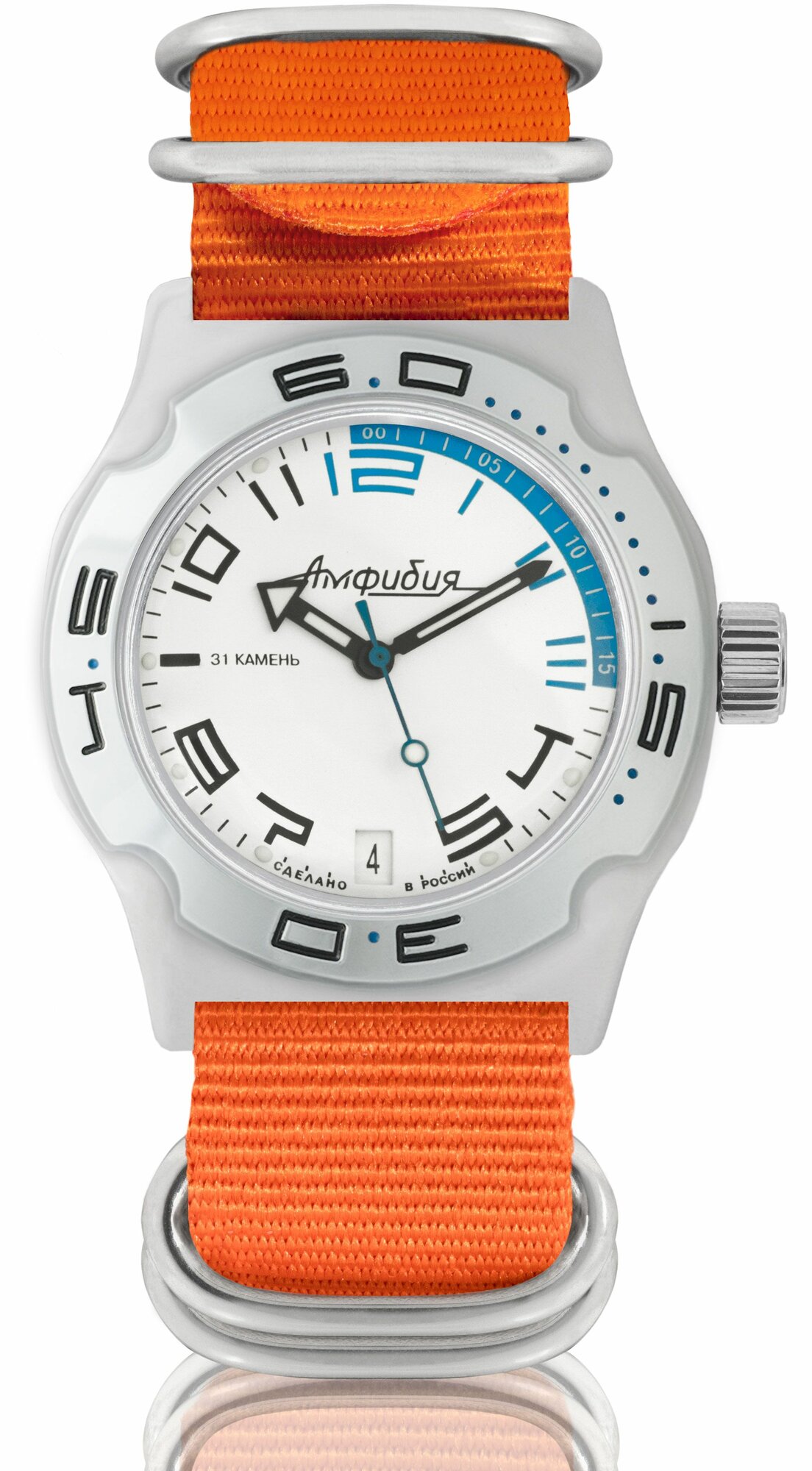 Часы наручные мужские механические с автоподзаводом Восток Амфибия 100473_orange, нейлон оранжевый 7 796 ₽