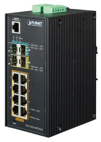 Промышленный управляемый коммутатор L2+/L4 PLANET IGS-5225-8P2S2X 8-Port 1000T 802.3at PoE+ 2-port 100/1000X SFP + 2-port 10G SFP+ Full Managed Switch
