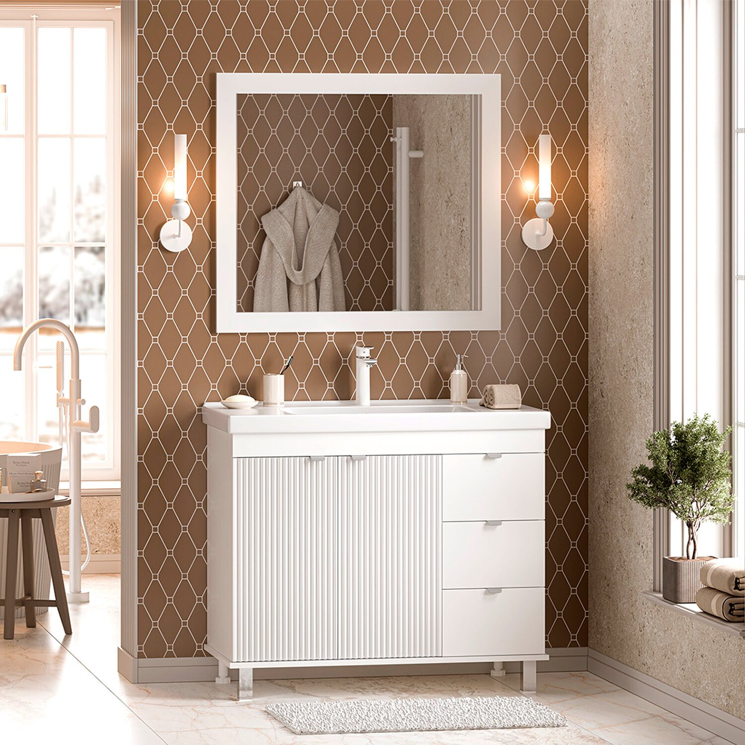 Тумба с раковиной Лейла 80 3 ящика белая 37 041 ₽