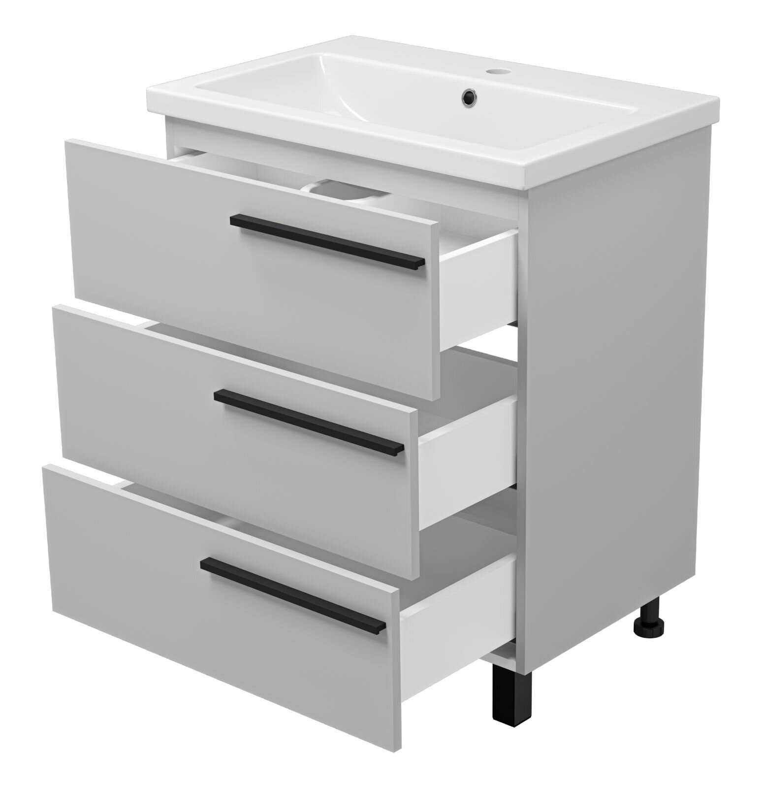 Тумба с раковиной напольная Misty Ненси - 70 с 3 ящиками, серая матовая эмаль информация: