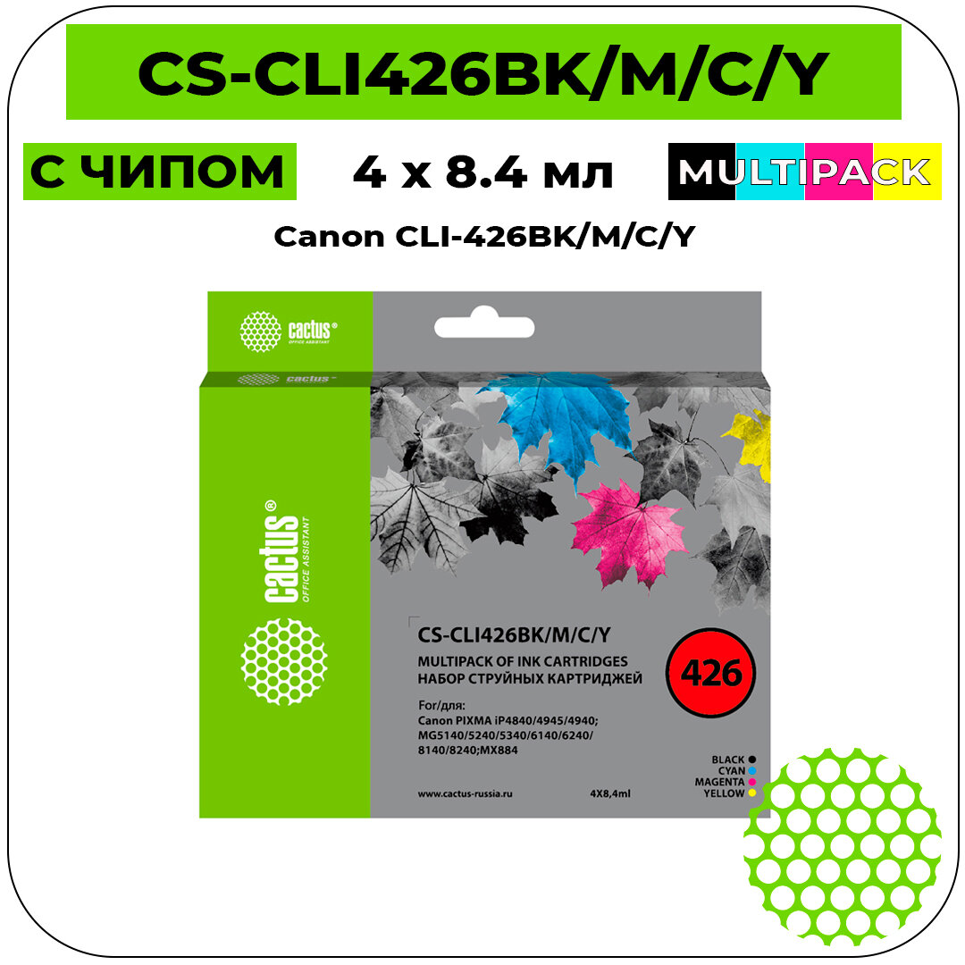Картридж струйный Cactus CS-CLI426BK/M/C/Y черный/голубой/желтый/пурпурный набор (33.6мл) для Canon Pixma MG5140/5240/6140/8140/MX884 информация: