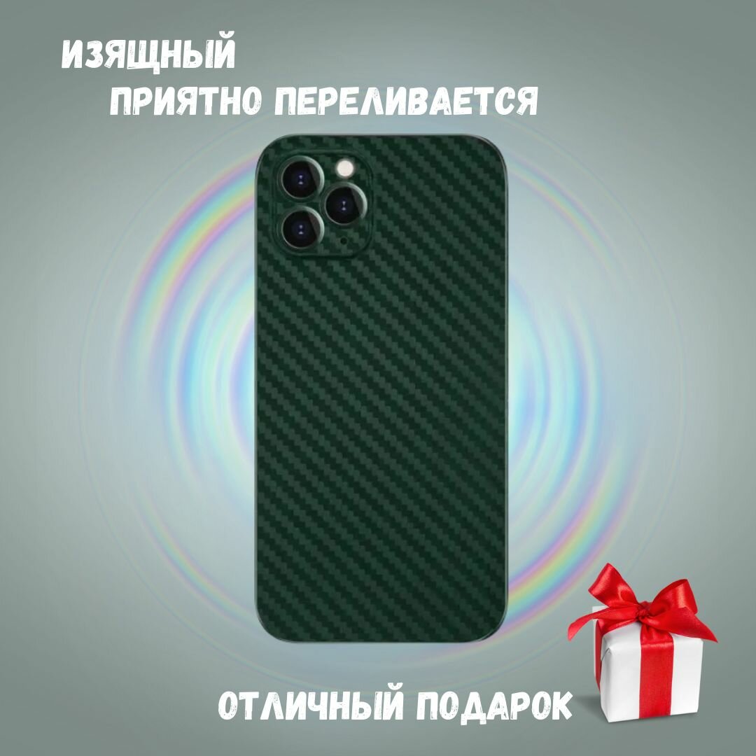 Ультратонкий чехол K-DOO Air Carbon для iPhone 13 Pro Max карбоновый / ультратонкий для Apple iPhone 13 Макс / карбон / с защитой камеры / Зеленый информация: