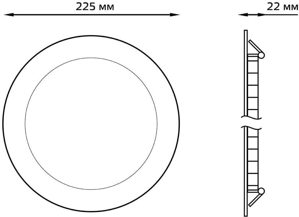 Встраиваемый светильник Gauss ультратонкий круглый IP20 18W,225х22, 210, 6500K 1560лм 1/20