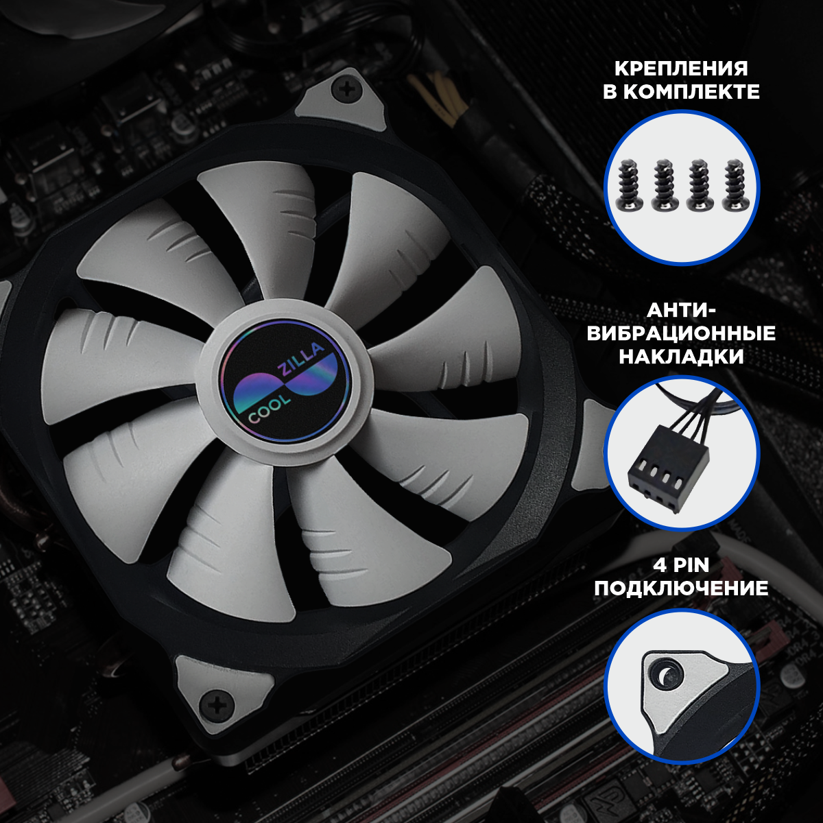 Вентилятор корпусный для ПК Coolzilla, 120мм, гидродинамический подшипник, 25дБ, pwm информация: