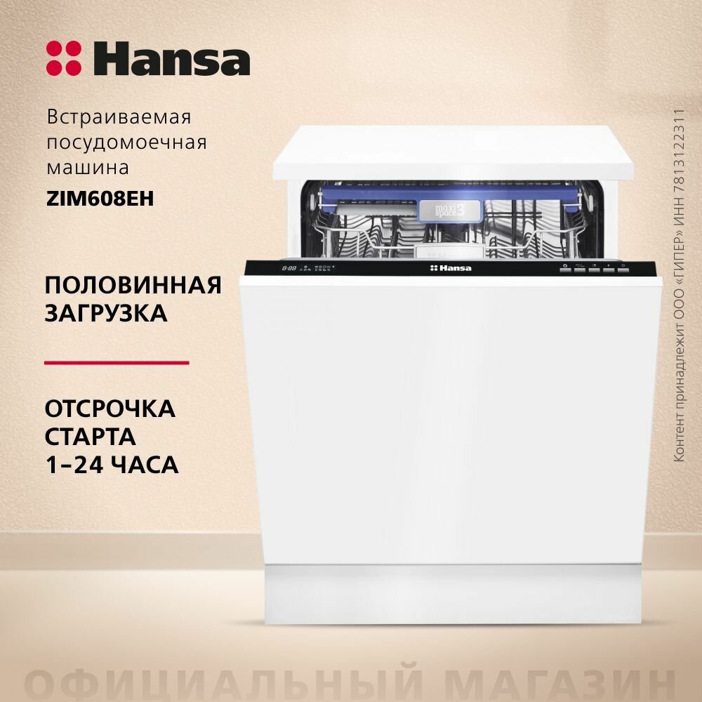 10 цен на Встраиваемая посудомоечная машина Hansa ZIM608EH, 60 см, с защитой от протечек, 8 программ, 3 корзины, режим быстрой мойки и половинной загрузки, отсрочка старта