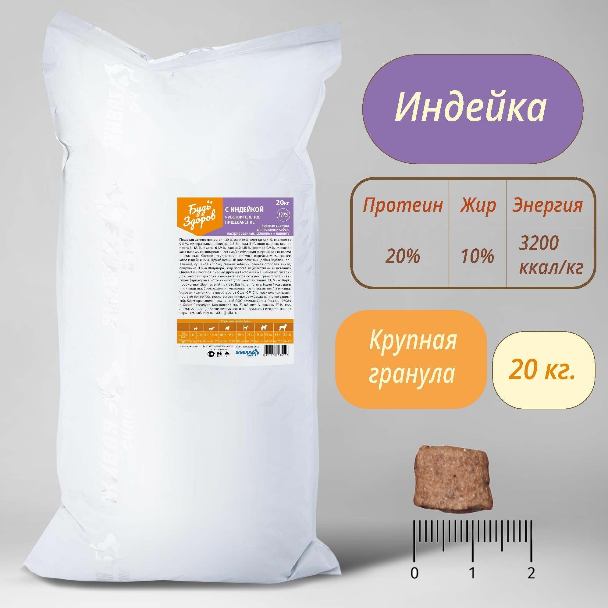 Живая Сила Будь Здоров сухой корм с индейкой для пожилых, взрослых кастрированных собак. Чувствительное пищеварение. Крупная гранула 20 кг