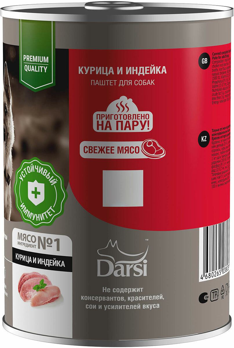 Консервы (паштет) для взрослых собак Darsi Курица и Индейка , 9шт.*410г информация: