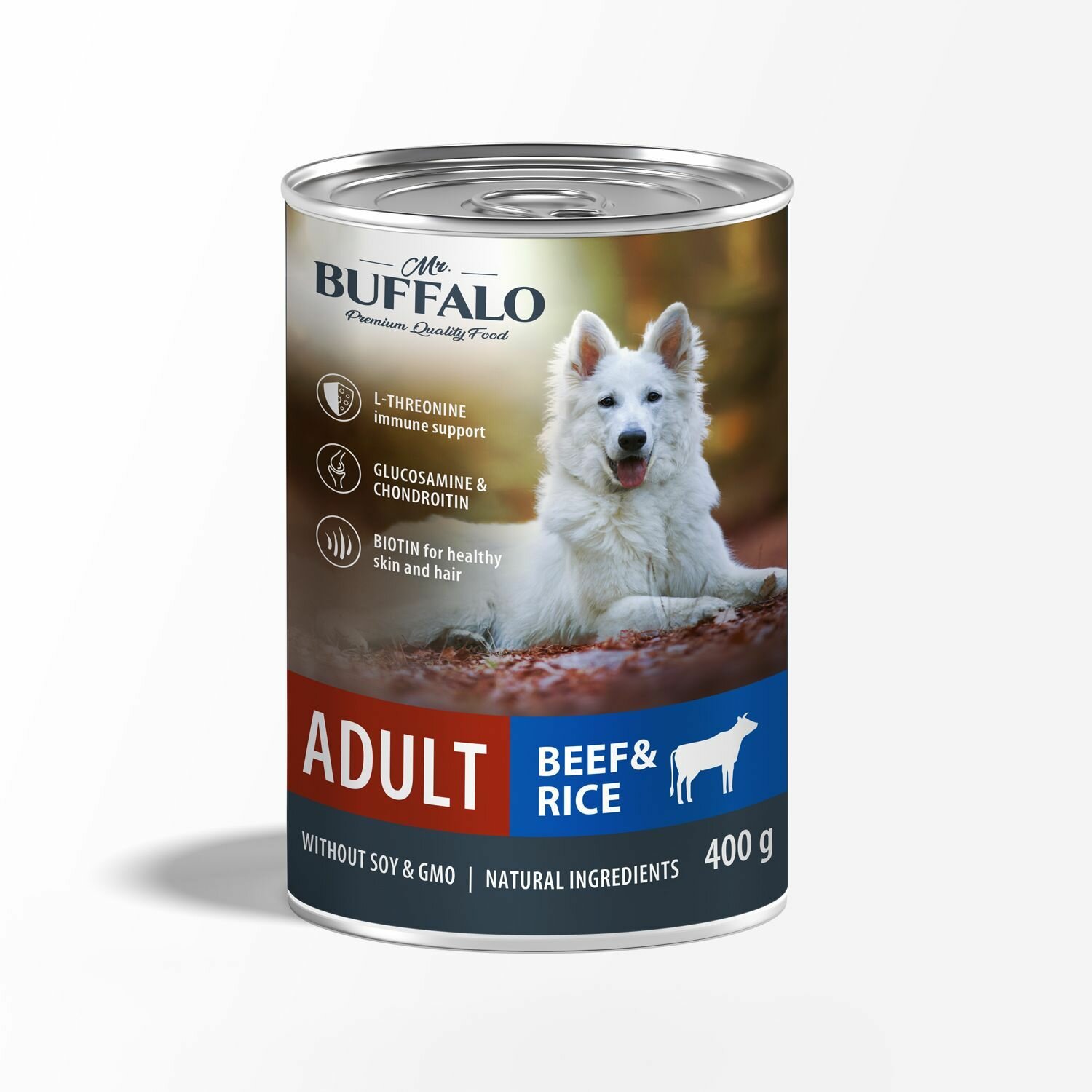 MR.BUFFALO ADULT DOG BEEF & HEART для взрослых собак всех пород с говядиной и сердцем банка 400грNEW 400 гр х 6 шт